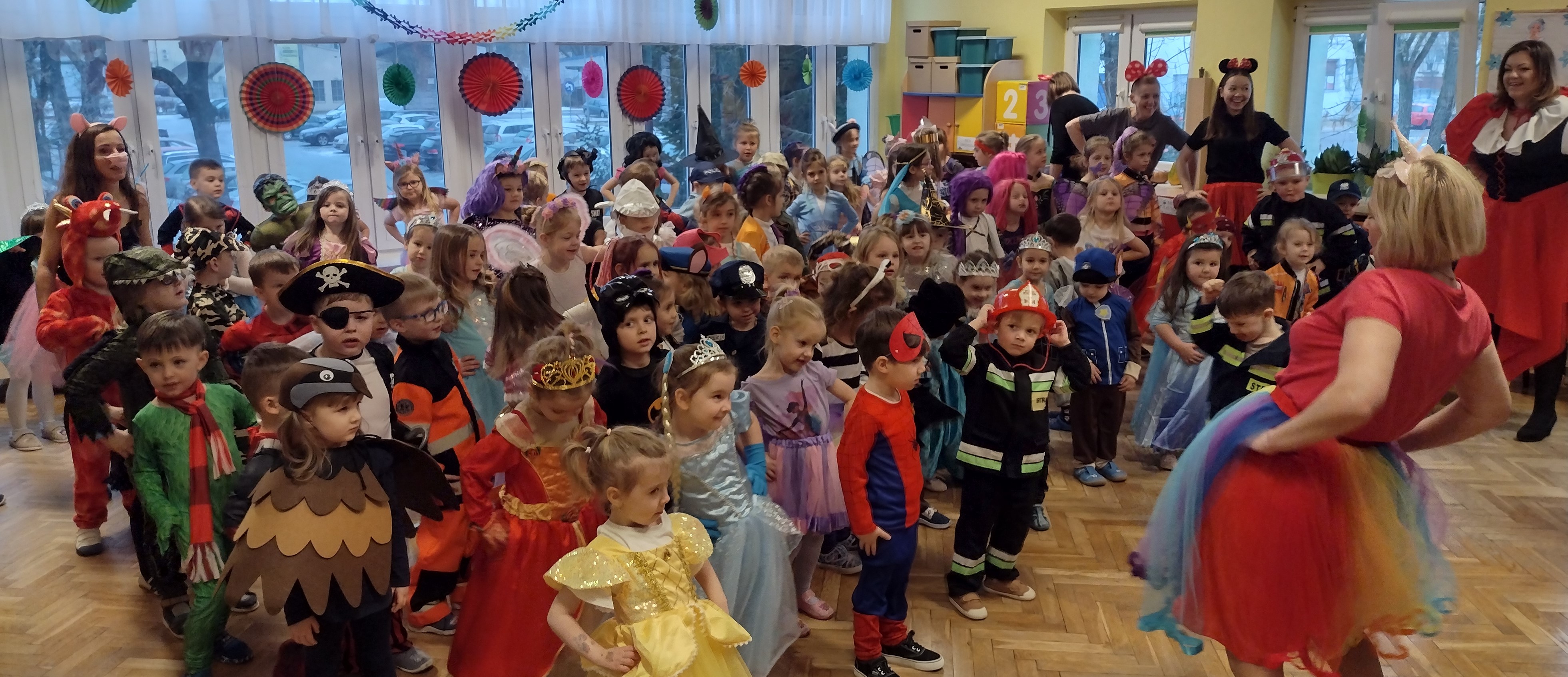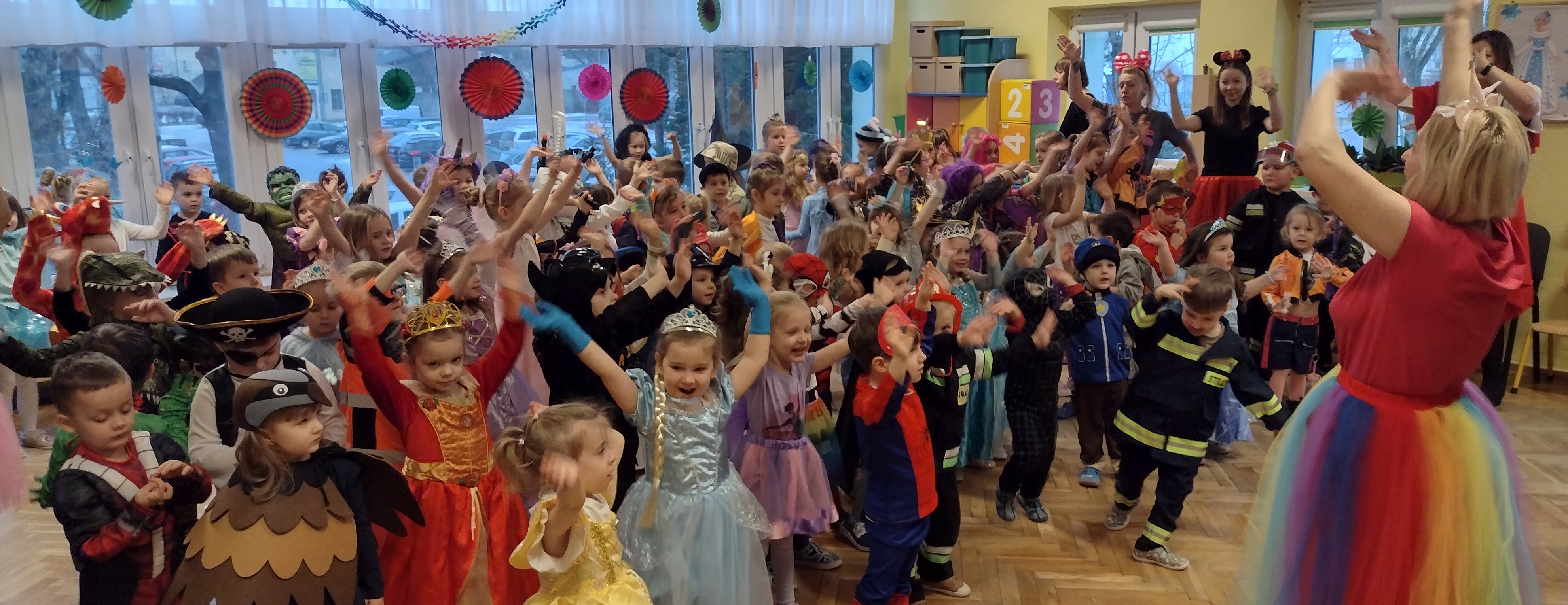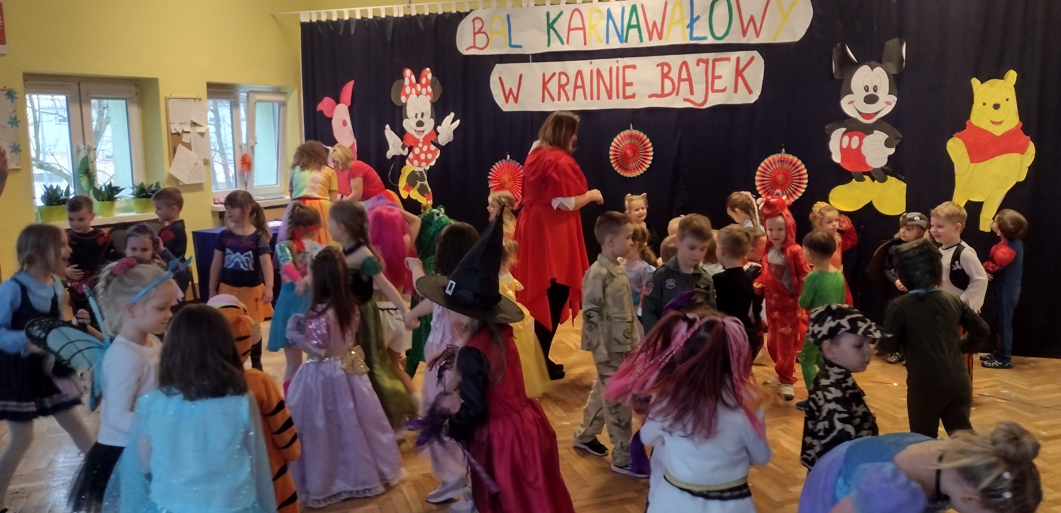 30 stycznia odbył się w naszym przedszkolu wyczekiwany przez wszystkie przedszkolaki bal karnawałowy. Dzieci mogły wcielić się w tym dniu w swojego ulubionego bohatera z bajki lub w inną uwielbianą postać. Wszyscy świetnie bawili się w rytm znanych przebojów i podczas wspólnych zabaw tanecznych. Śmiechu co niemiara nie zabrakło podczas karnawałowych zabaw grupowych - układaniu nosa Pinokia, tworzeniu sylwetki misia z zamkniętymi oczami, wyścigu bajkowych postaci, czy oddzielaniu ziarenek niczym Kopciuszek. To był szalony czas i mamy nadzieję, że na długo pozostanie we wspomnieniach naszych przedszkolaków.