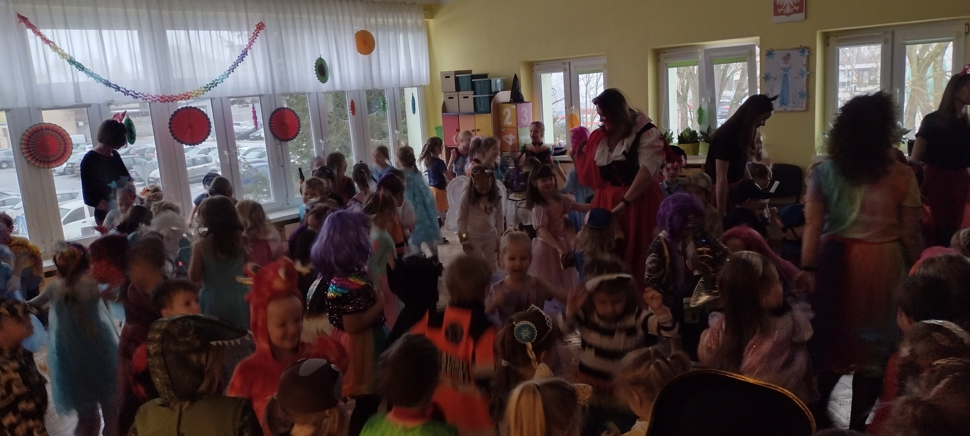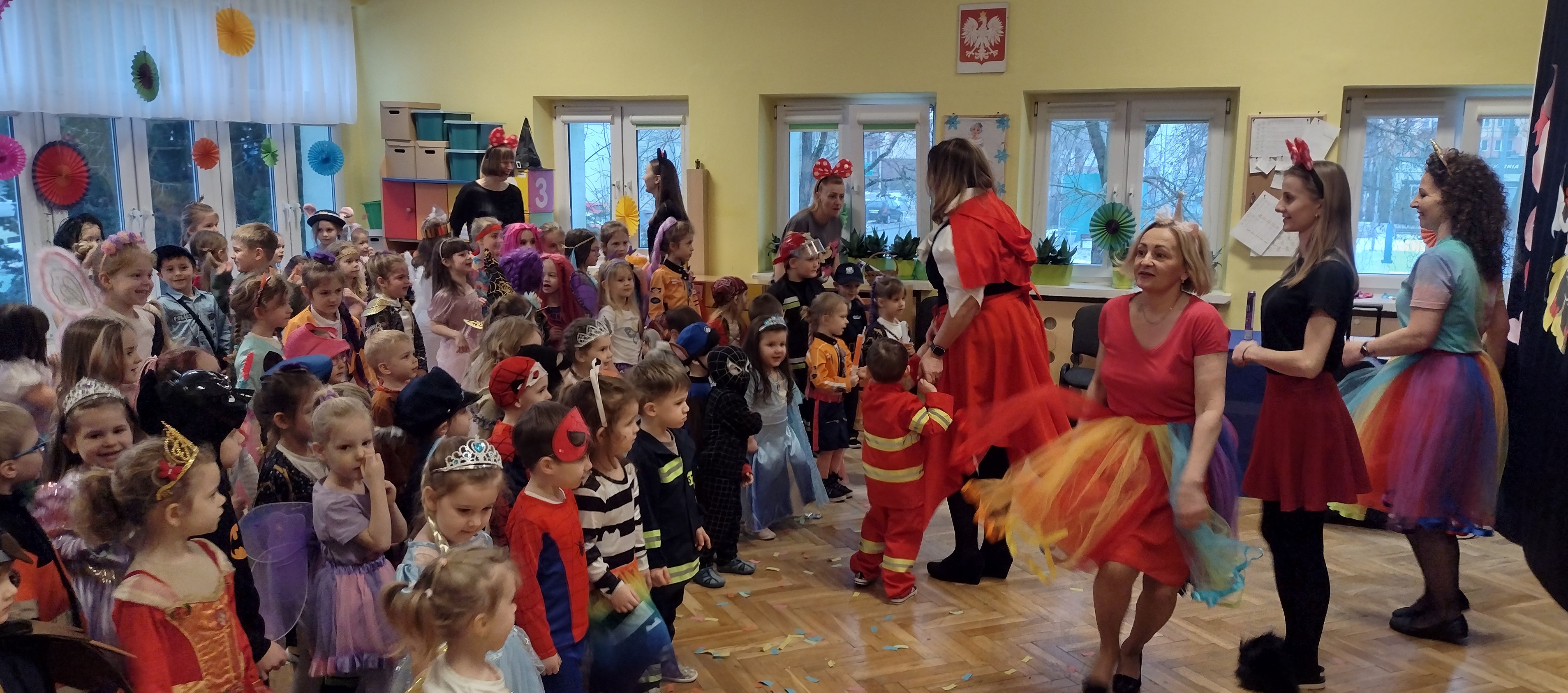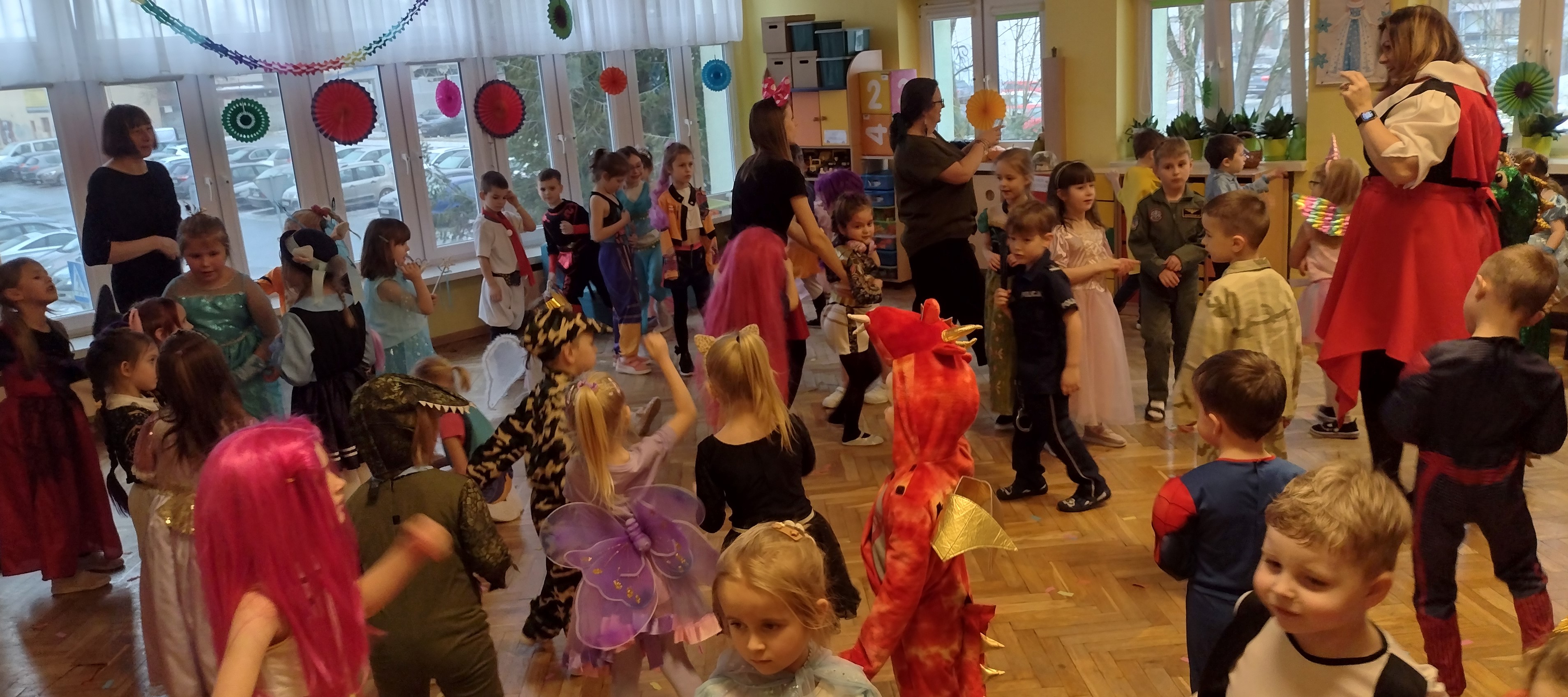 30 stycznia odbył się w naszym przedszkolu wyczekiwany przez wszystkie przedszkolaki bal karnawałowy. Dzieci mogły wcielić się w tym dniu w swojego ulubionego bohatera z bajki lub w inną uwielbianą postać. Wszyscy świetnie bawili się w rytm znanych przebojów i podczas wspólnych zabaw tanecznych. Śmiechu co niemiara nie zabrakło podczas karnawałowych zabaw grupowych - układaniu nosa Pinokia, tworzeniu sylwetki misia z zamkniętymi oczami, wyścigu bajkowych postaci, czy oddzielaniu ziarenek niczym Kopciuszek. To był szalony czas i mamy nadzieję, że na długo pozostanie we wspomnieniach naszych przedszkolaków.