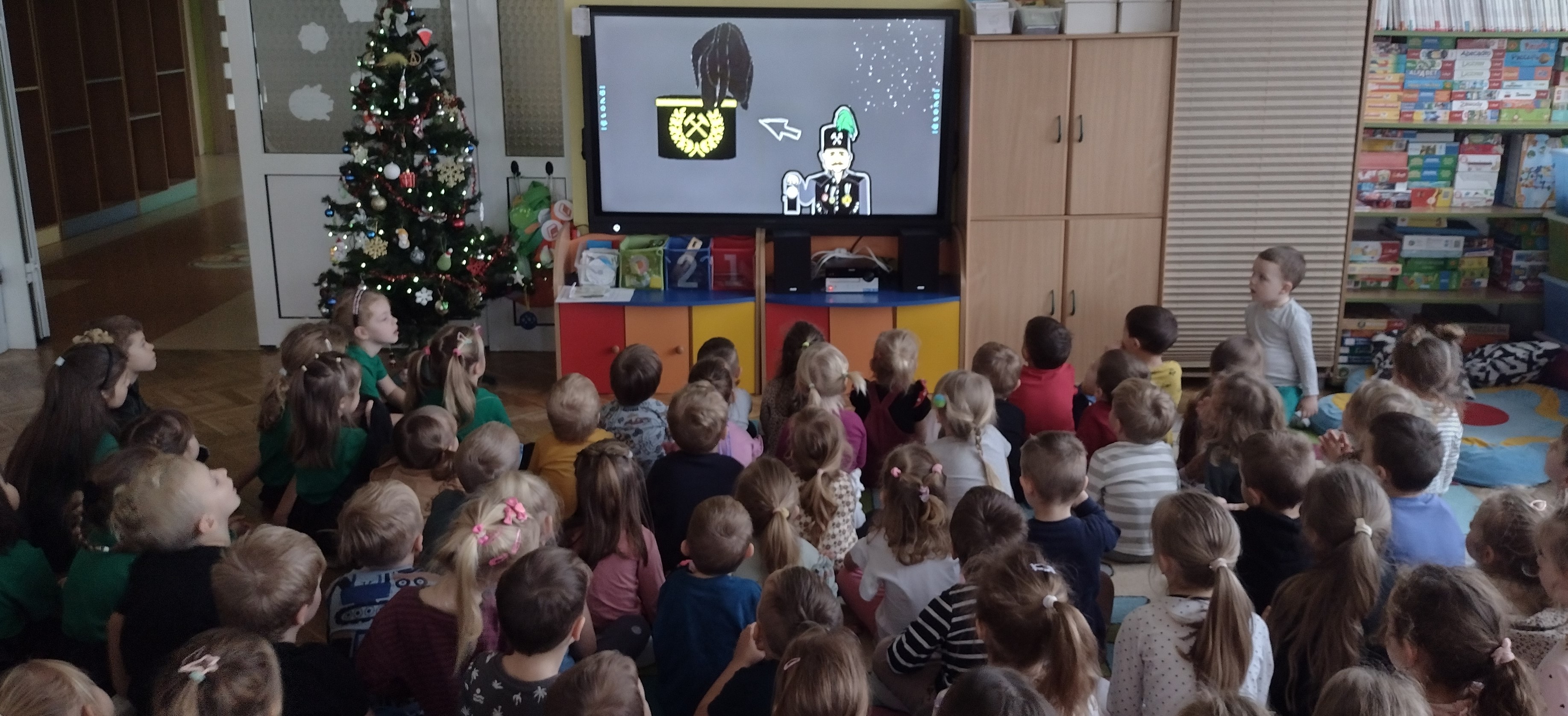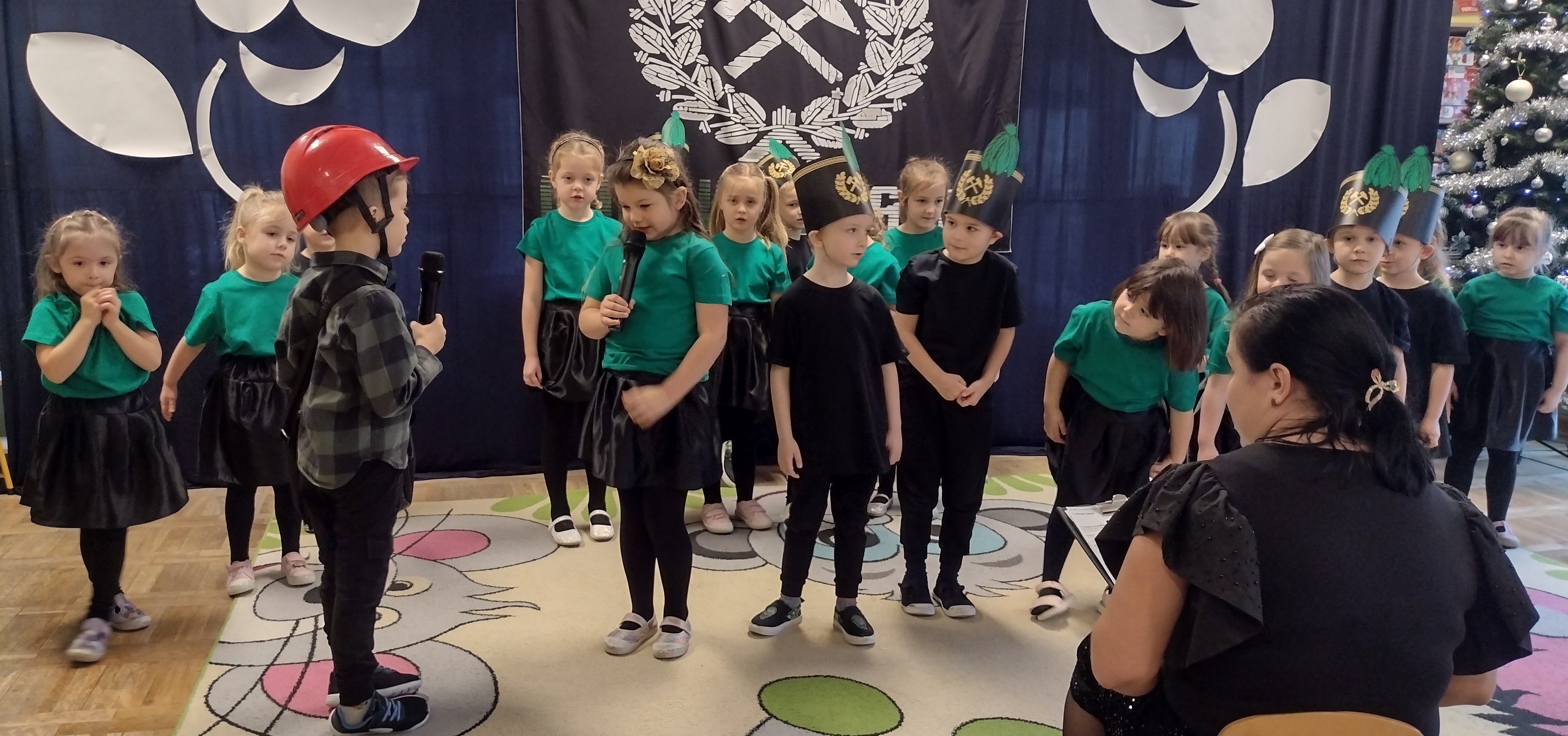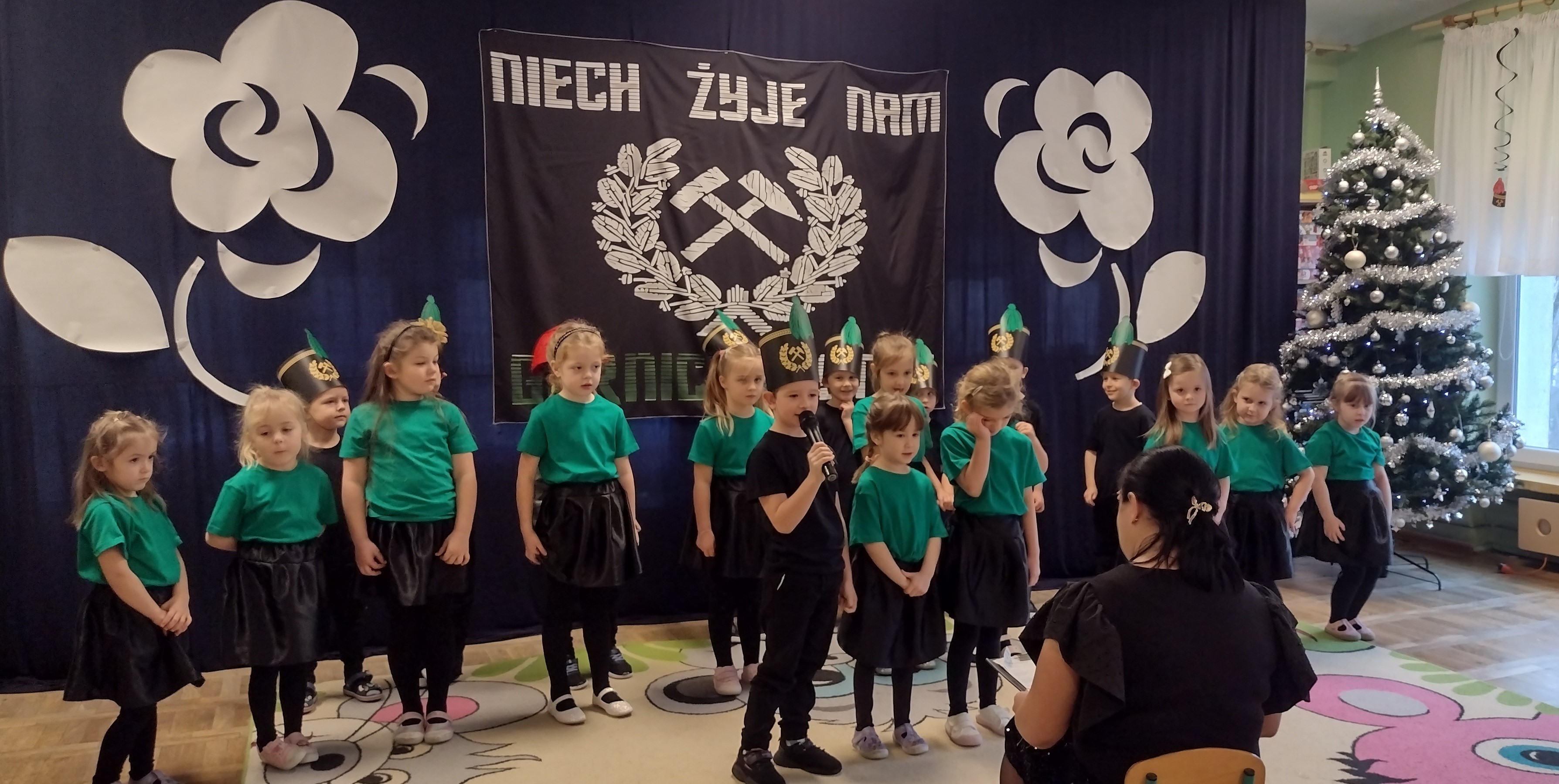 Gościa, programem artystycznym, powitała grupa Biedronek. Dzieci zaprezentowały wiersze i piosenki o tematyce górniczej i pięknie zatańczyły do utworu "Poszło dziewczę po ziele". Po części artystycznej Pan górnik opowiedział o swojej pracy i zaprezentował tradycyjny strój górniczy. Dzieci obejrzały także edukacyjny filmik, z którego dowiedziały się m.in. dlaczego św. Barbara została patronką górników. Każdy przedszkolak otrzymał również prezent - ciasteczko.