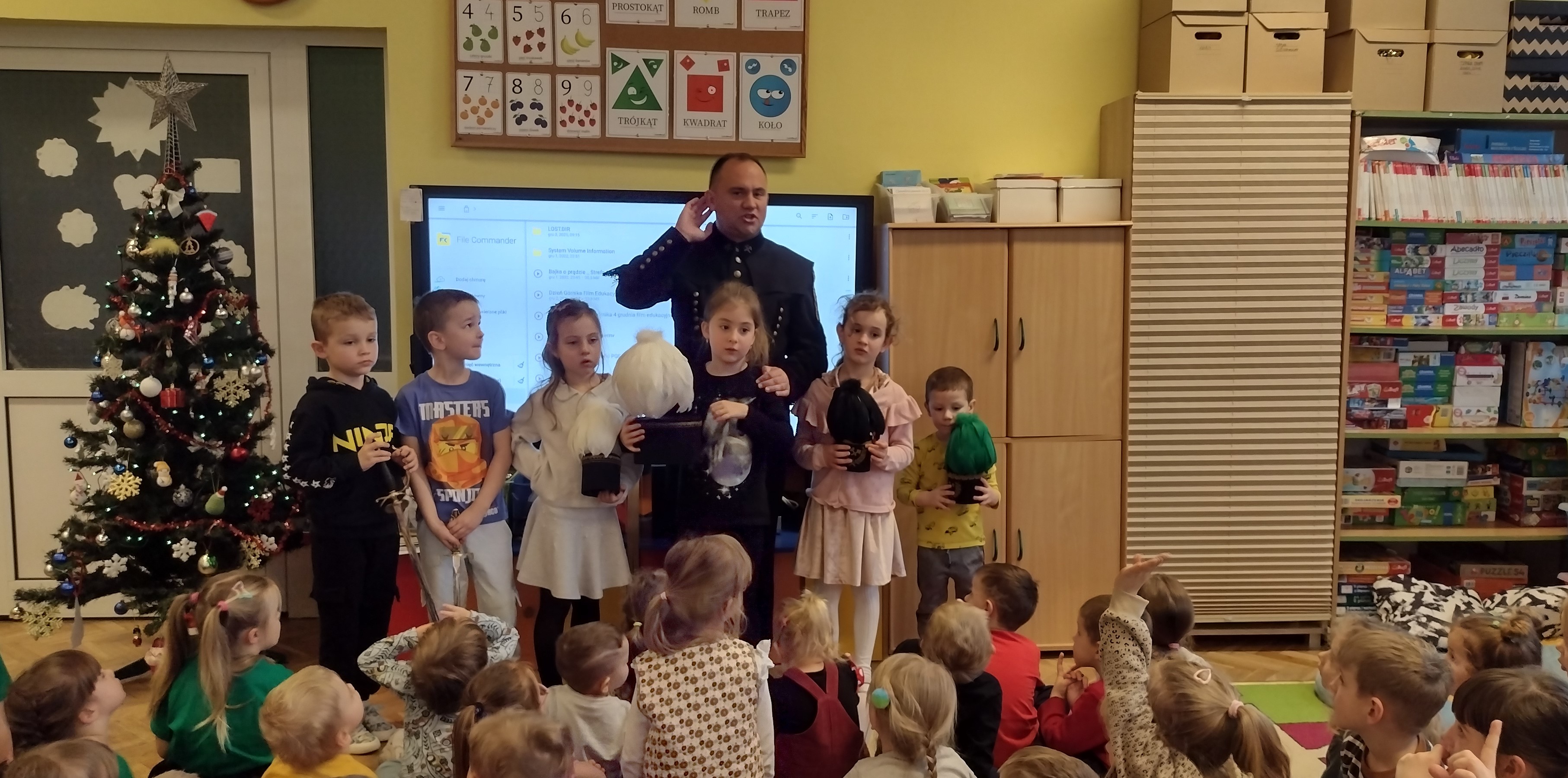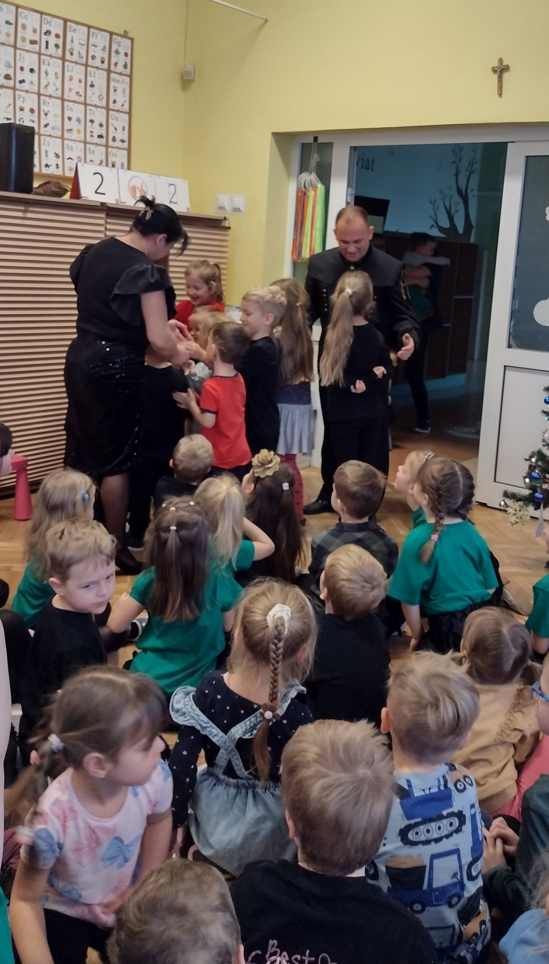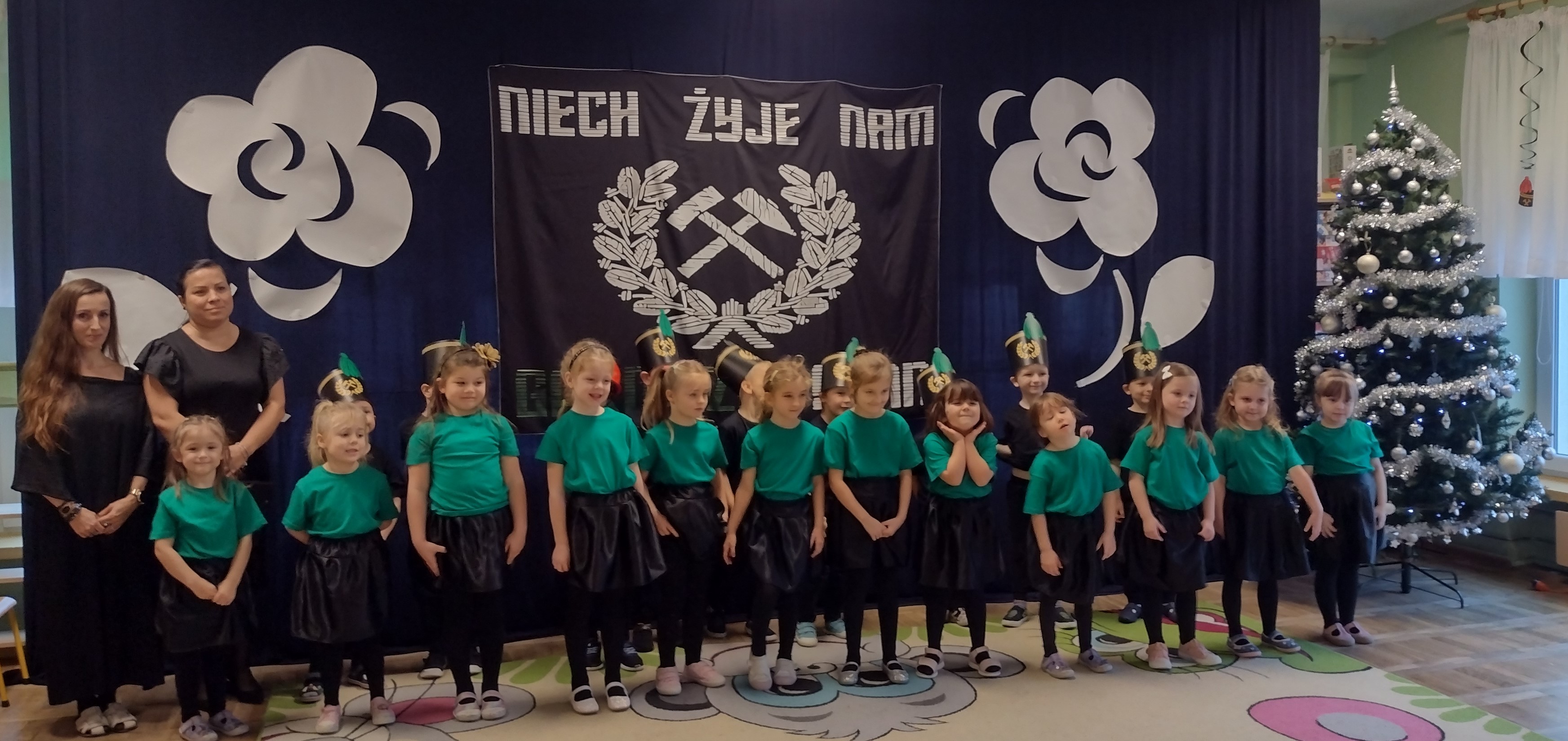 Gościa, programem artystycznym, powitała grupa Biedronek. Dzieci zaprezentowały wiersze i piosenki o tematyce górniczej i pięknie zatańczyły do utworu "Poszło dziewczę po ziele". Po części artystycznej Pan górnik opowiedział o swojej pracy i zaprezentował tradycyjny strój górniczy. Dzieci obejrzały także edukacyjny filmik, z którego dowiedziały się m.in. dlaczego św. Barbara została patronką górników. Każdy przedszkolak otrzymał również prezent - ciasteczko.