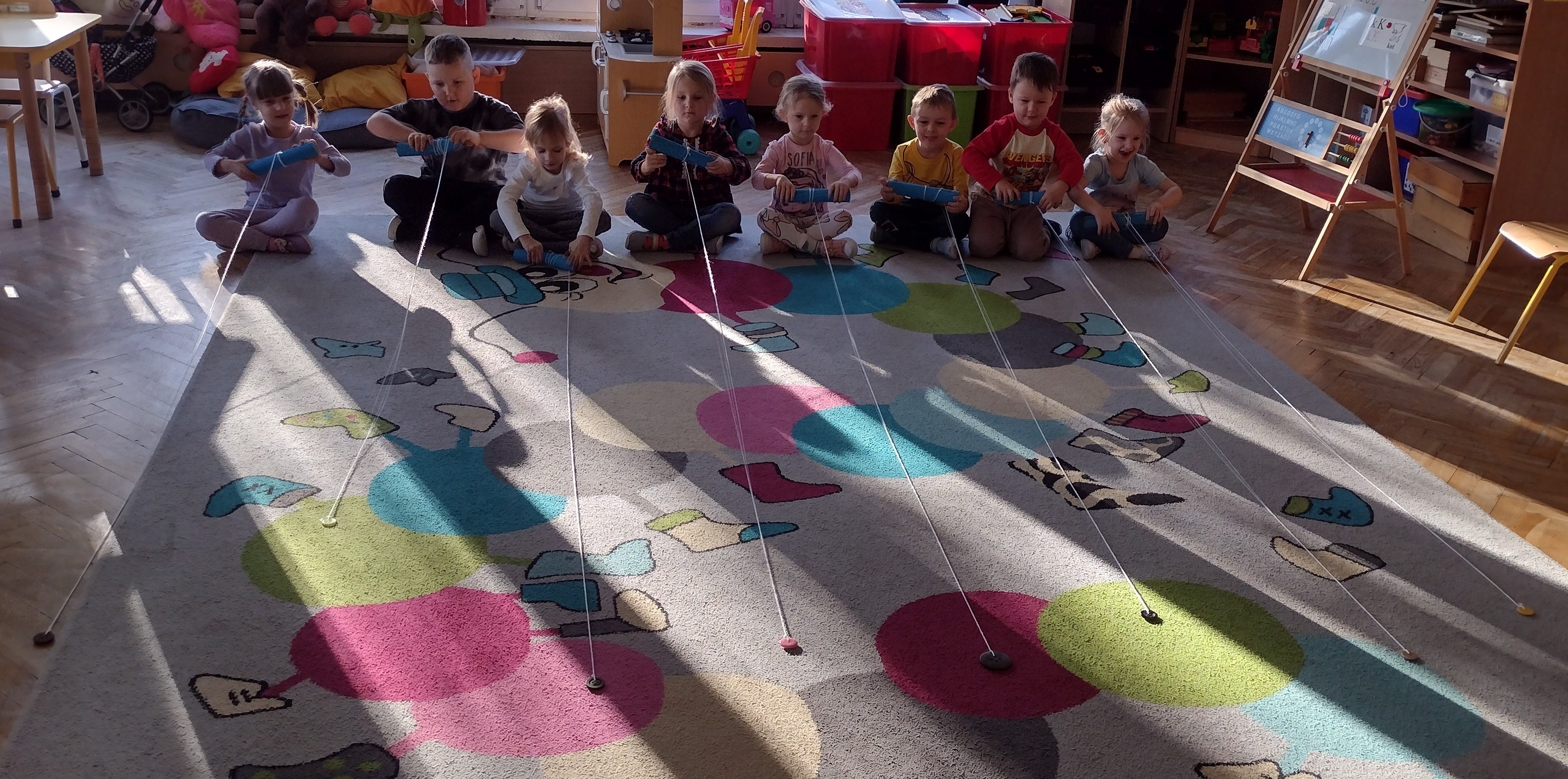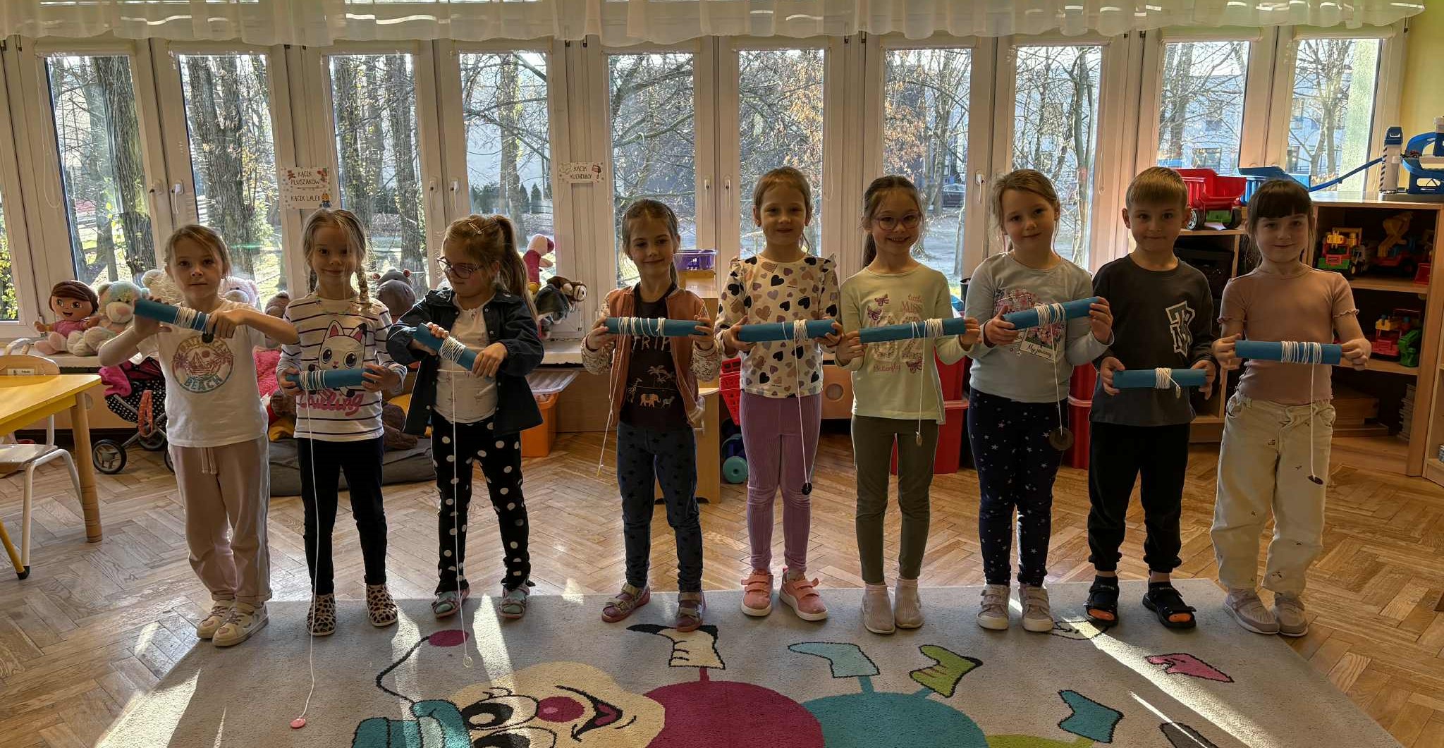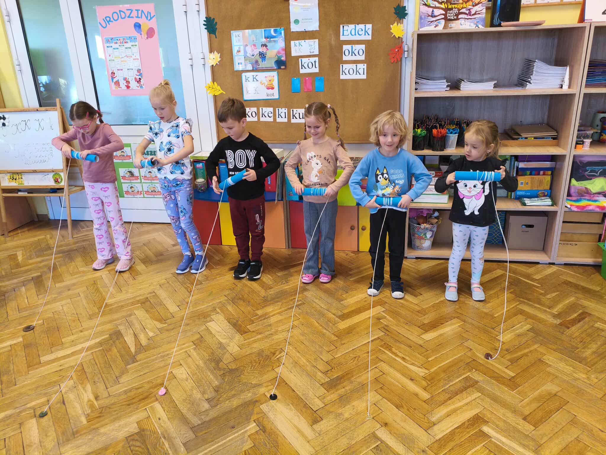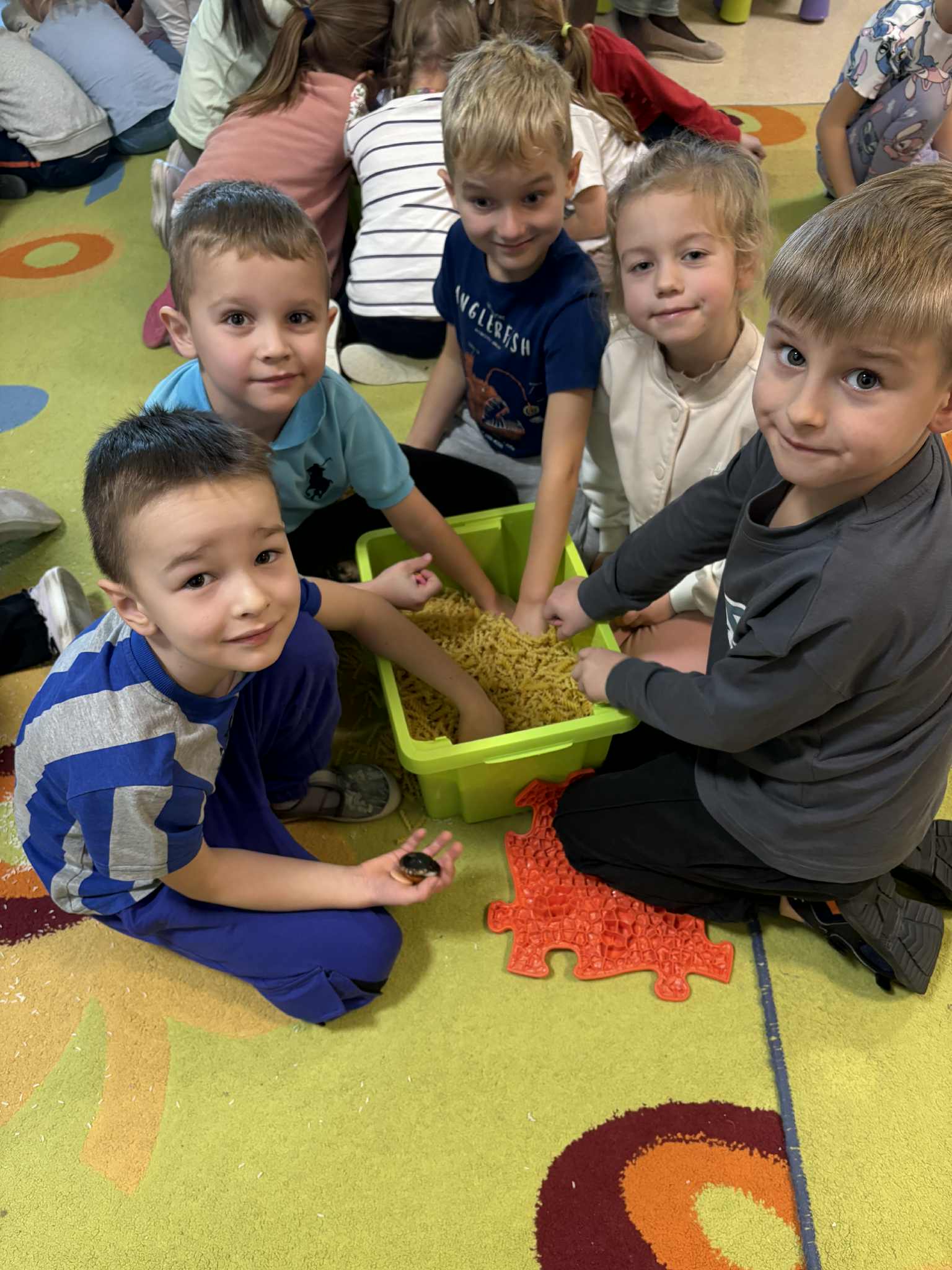 19 listopada odbył się w naszym przedszkolu Dzień Guzika. Była to świetna okazja do przeprowadzenia z dziećmi kreatywnych i niecodziennych aktywności oraz zabaw wspomagających motorykę małą i dużą, integrację sensoryczną, czy edukację matematyczną. Przedszkolaki poszukiwały guzików w materiałach sypkich (makaron, ryż), układały różnorodne wzory i przeliczały guziki w żelowych woreczkach, rzucały piłkami do celu, którym był ogromny guzik, uczestniczyły w wyścigach guzików oraz wyławiały guziki z wody. Ten dzień pokazał dzieciom, że nawet tak niepozorna rzecz jak guzik, może stać się podstawą wspaniale i kreatywnie spędzonego czasu.