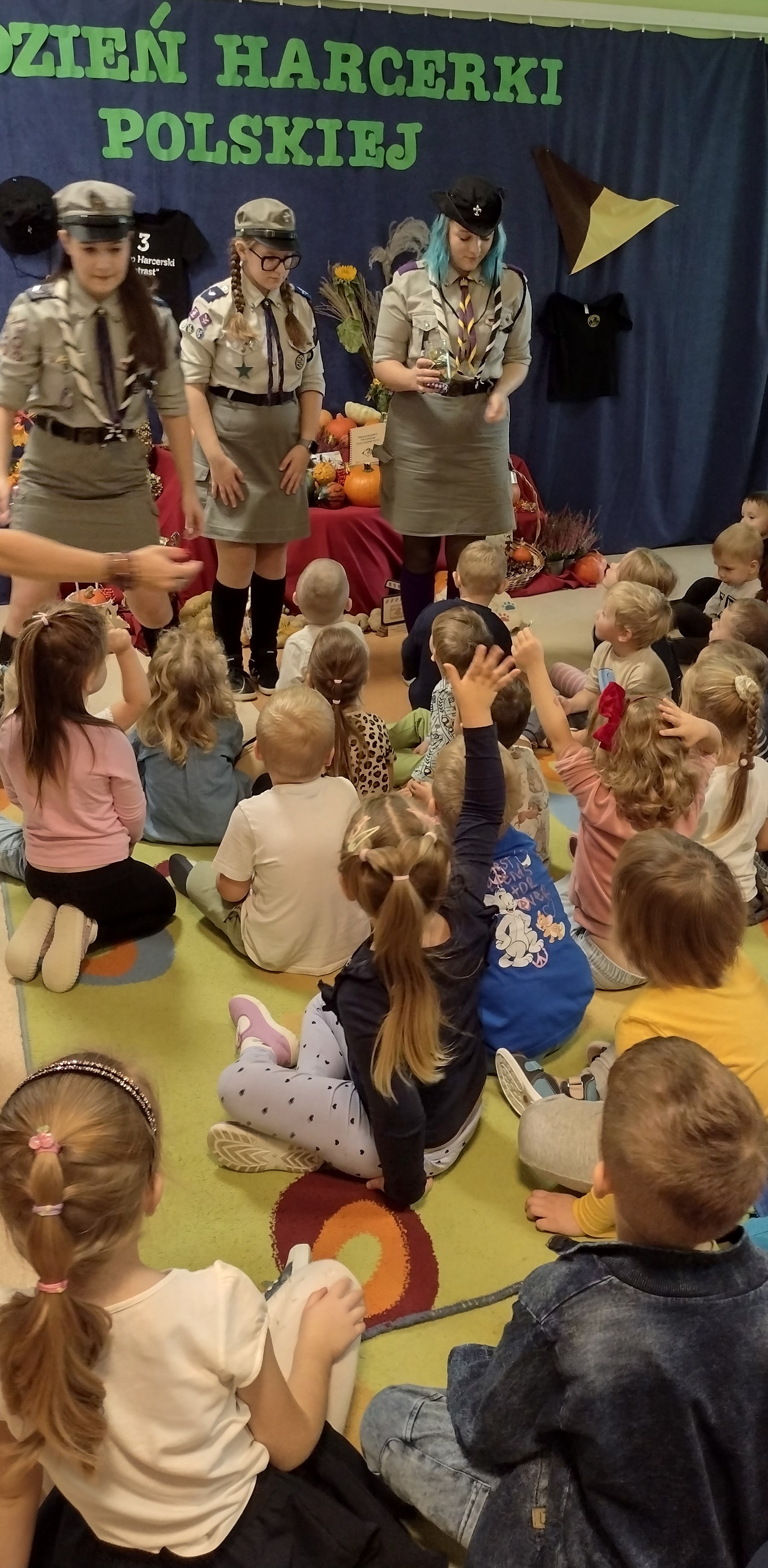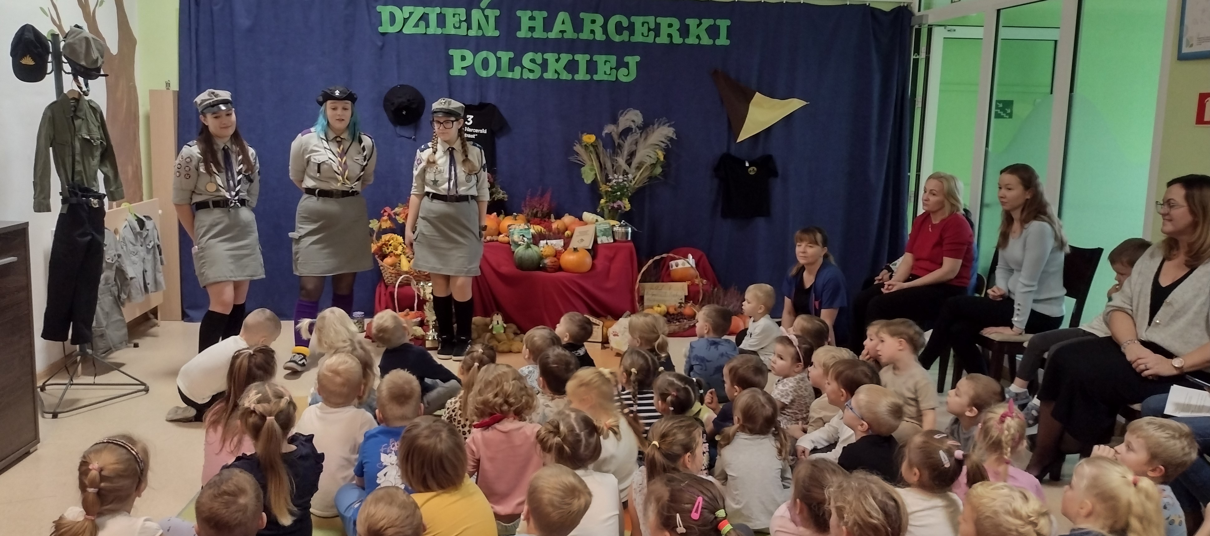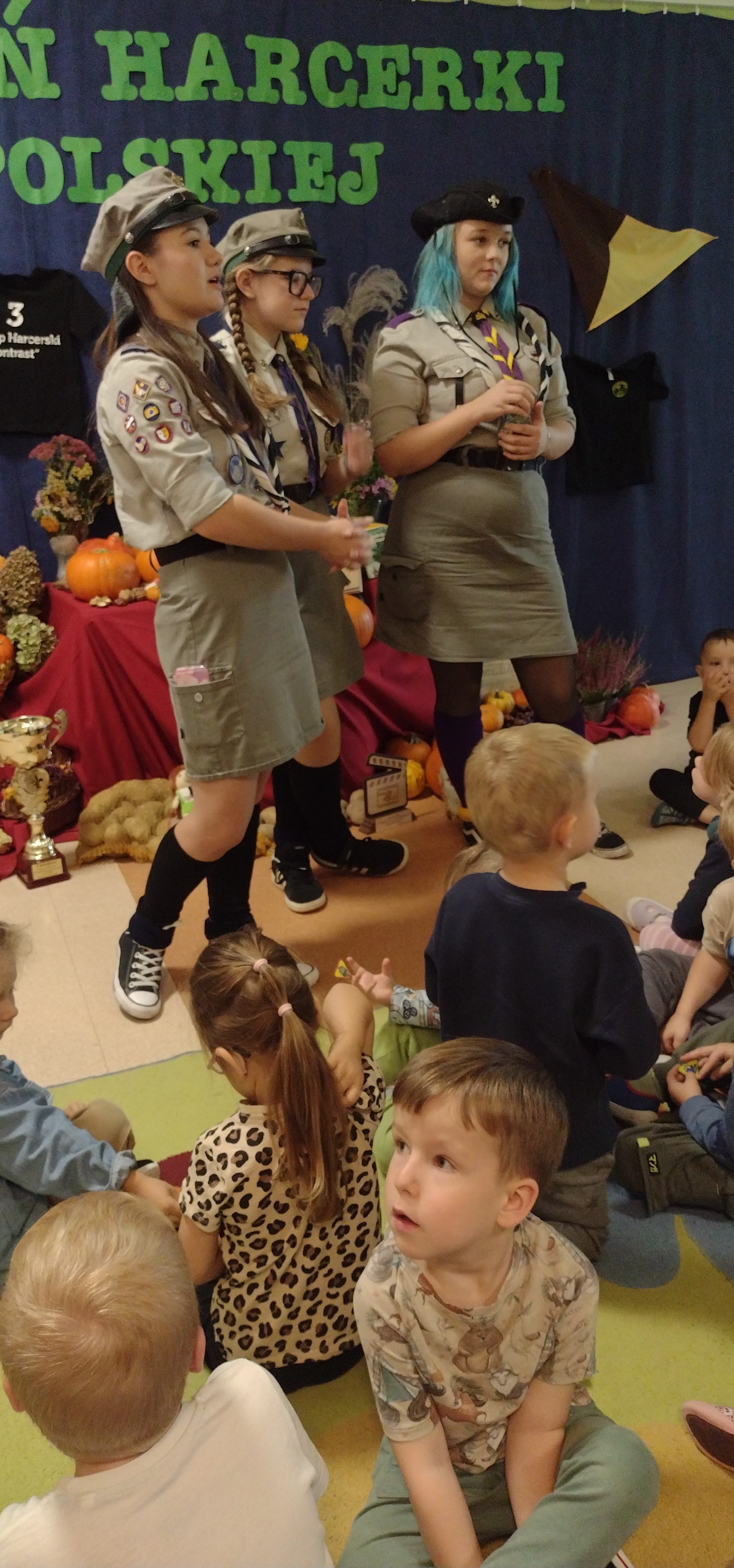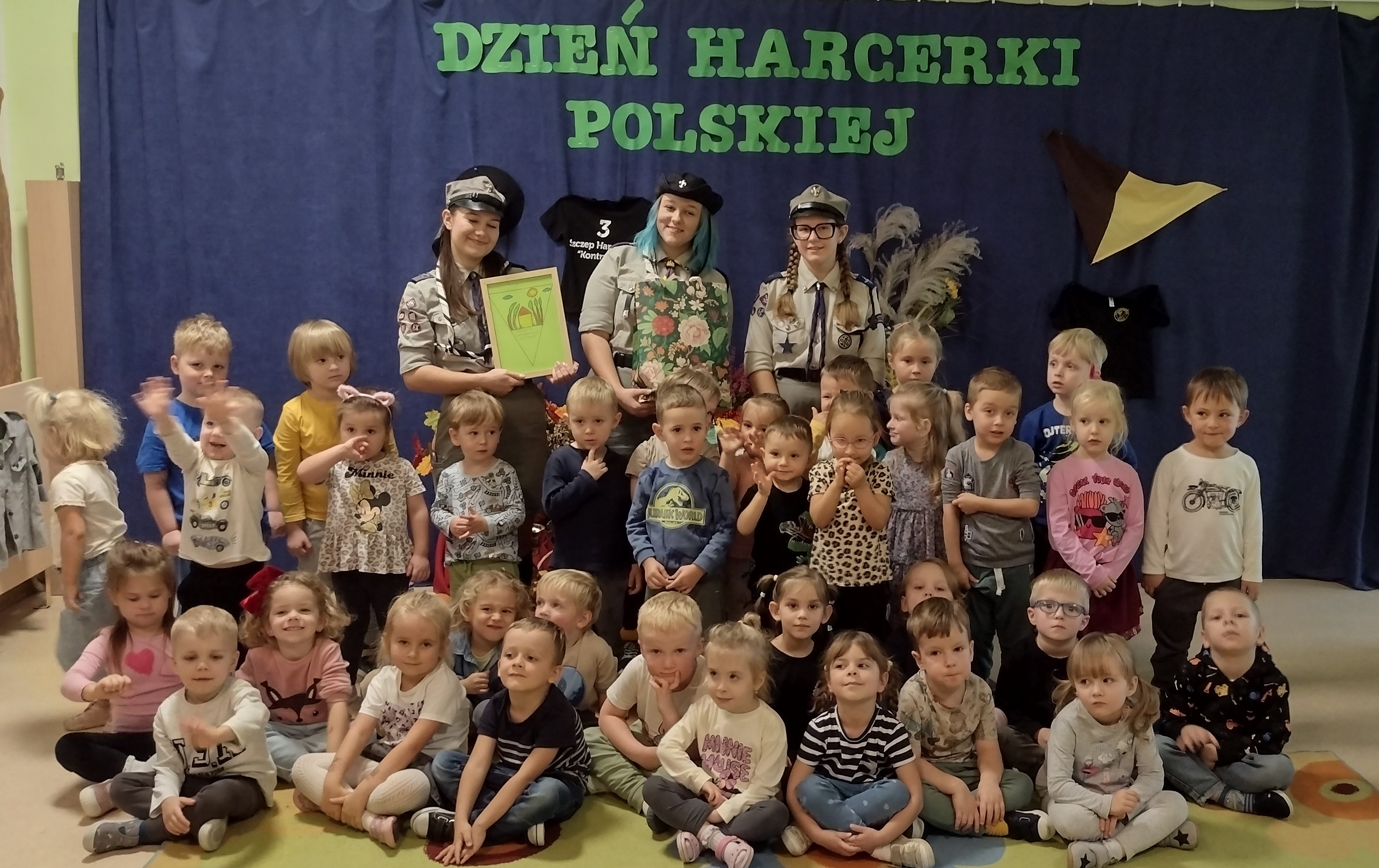Czuwaj! 10 października obchodziliśmy w naszym przedszkolu Dzień Harcerki Polskiej. Z tej okazji gościliśmy harcerki z bełchatowskiego ZHP. Dzieci obejrzały prezentację o początkach harcerstwa na ziemiach polskich. Dziewczyny przekazały dzieciom najważniejsze informacje dotyczące współczesnego harcerstwa. Wytłumaczyły, czym zajmują się harcerze oraz na czym polega zdobywanie sprawności harcerskich. Dzieci miały okazję zobaczyć strój harcerki oraz odznaki sprawności harcerskich. Dziewczyny zaprosiły dzieci do wspólnych harcerskich zabaw, podczas których nasze przedszkolaki bawiły się świetnie! Bardzo dziękujemy za przyjęcie zaproszenia i za przekazanie tak wielu ciekawych informacji o harcerstwie naszym podopiecznym. Czuwaj!