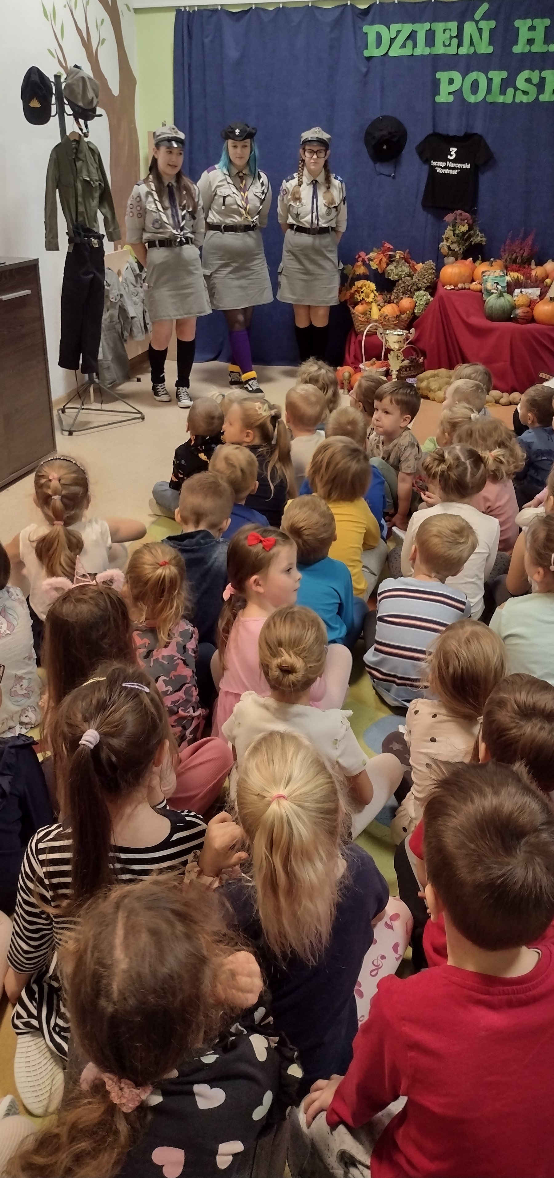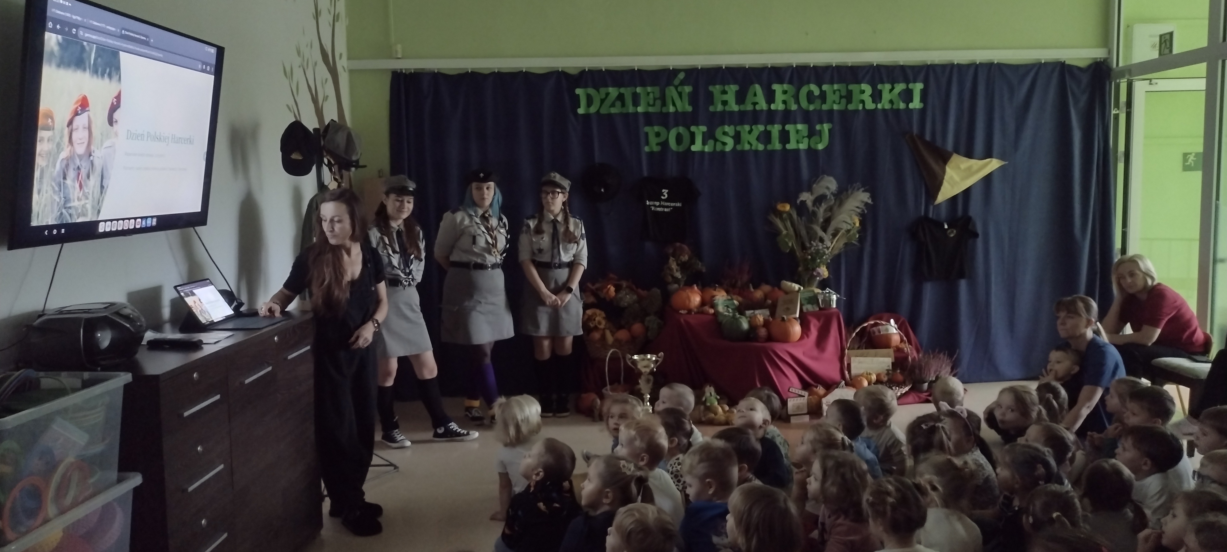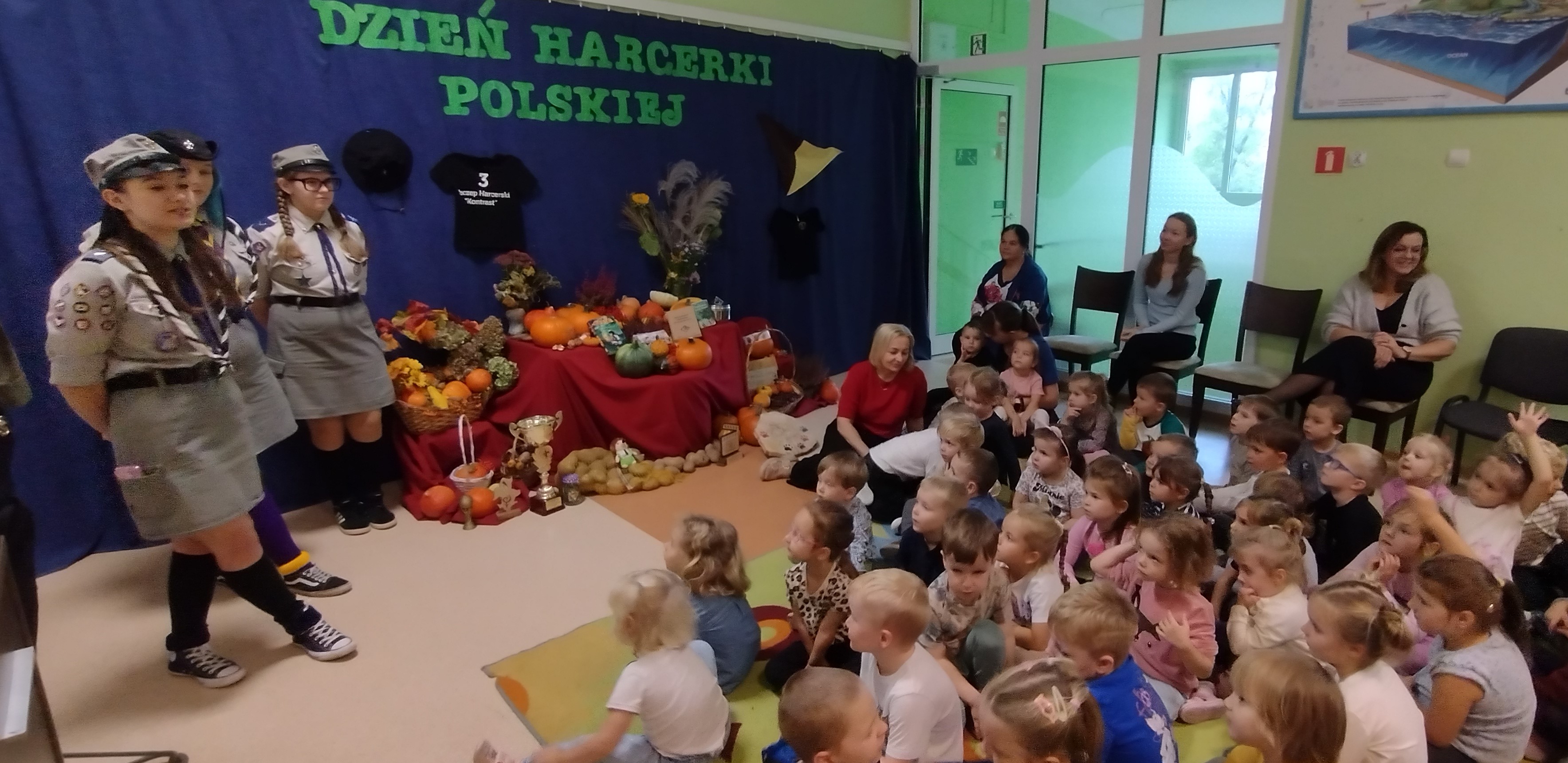 Czuwaj! 10 października obchodziliśmy w naszym przedszkolu Dzień Harcerki Polskiej. Z tej okazji gościliśmy harcerki z bełchatowskiego ZHP. Dzieci obejrzały prezentację o początkach harcerstwa na ziemiach polskich. Dziewczyny przekazały dzieciom najważniejsze informacje dotyczące współczesnego harcerstwa. Wytłumaczyły, czym zajmują się harcerze oraz na czym polega zdobywanie sprawności harcerskich. Dzieci miały okazję zobaczyć strój harcerki oraz odznaki sprawności harcerskich. Dziewczyny zaprosiły dzieci do wspólnych harcerskich zabaw, podczas których nasze przedszkolaki bawiły się świetnie! Bardzo dziękujemy za przyjęcie zaproszenia i za przekazanie tak wielu ciekawych informacji o harcerstwie naszym podopiecznym. Czuwaj!