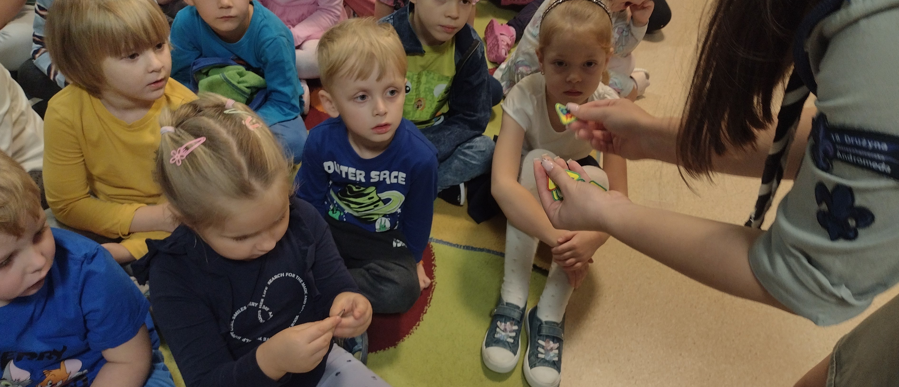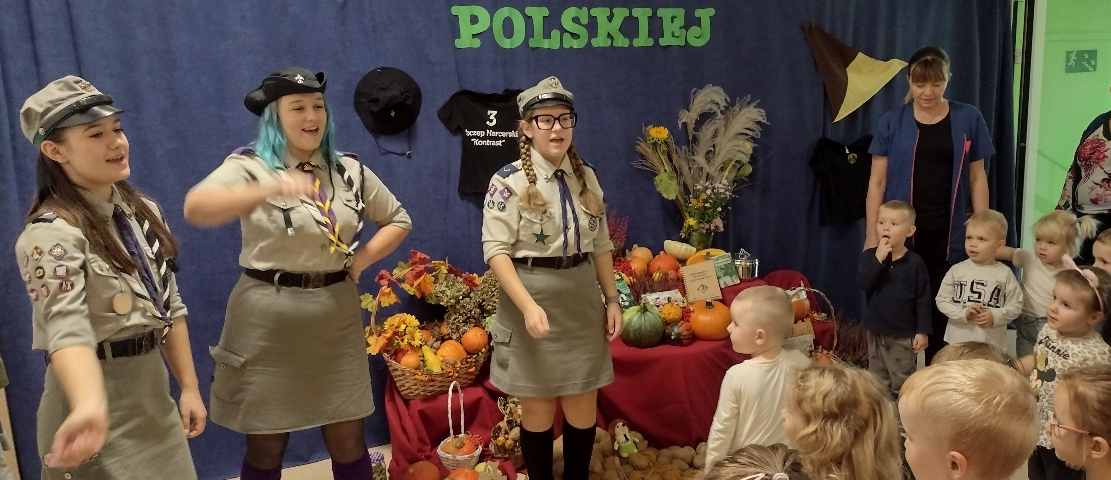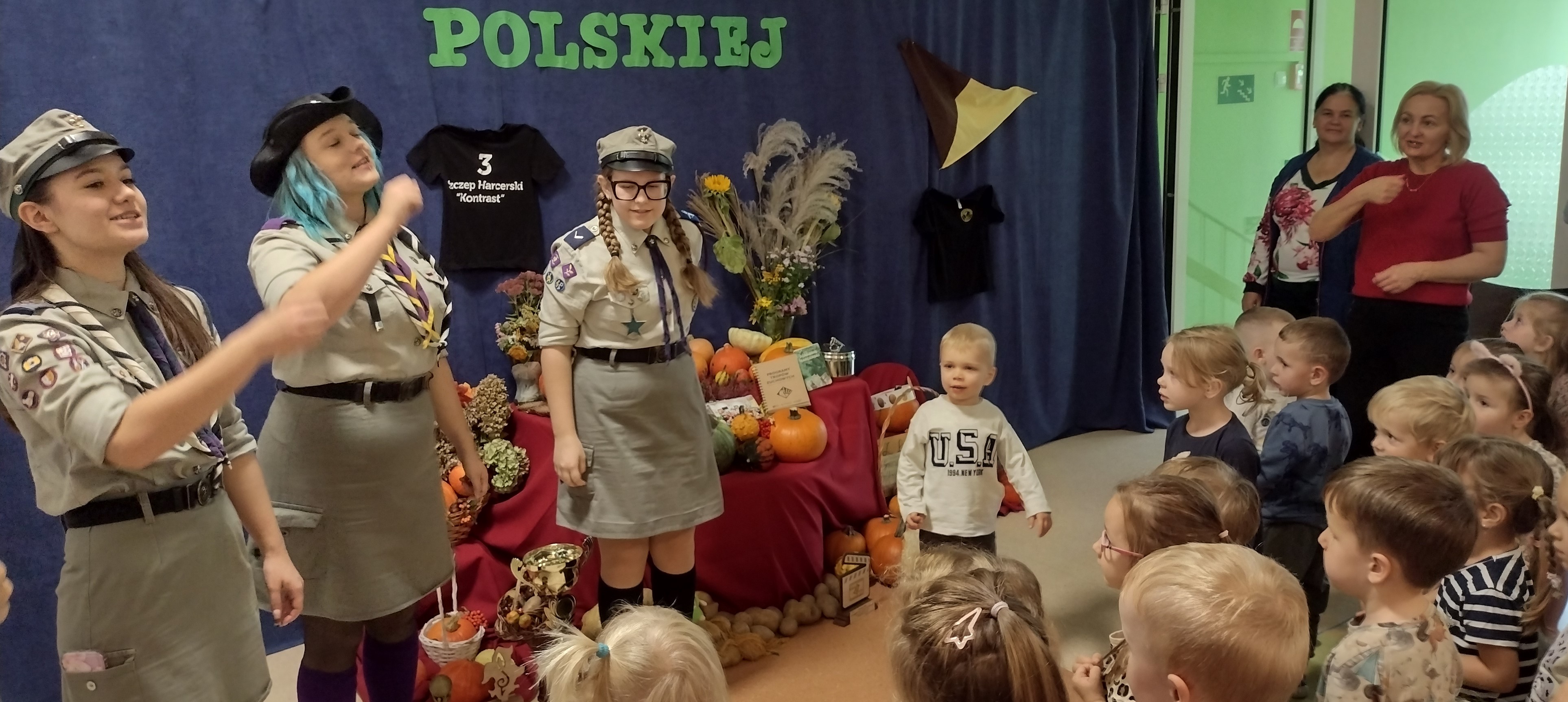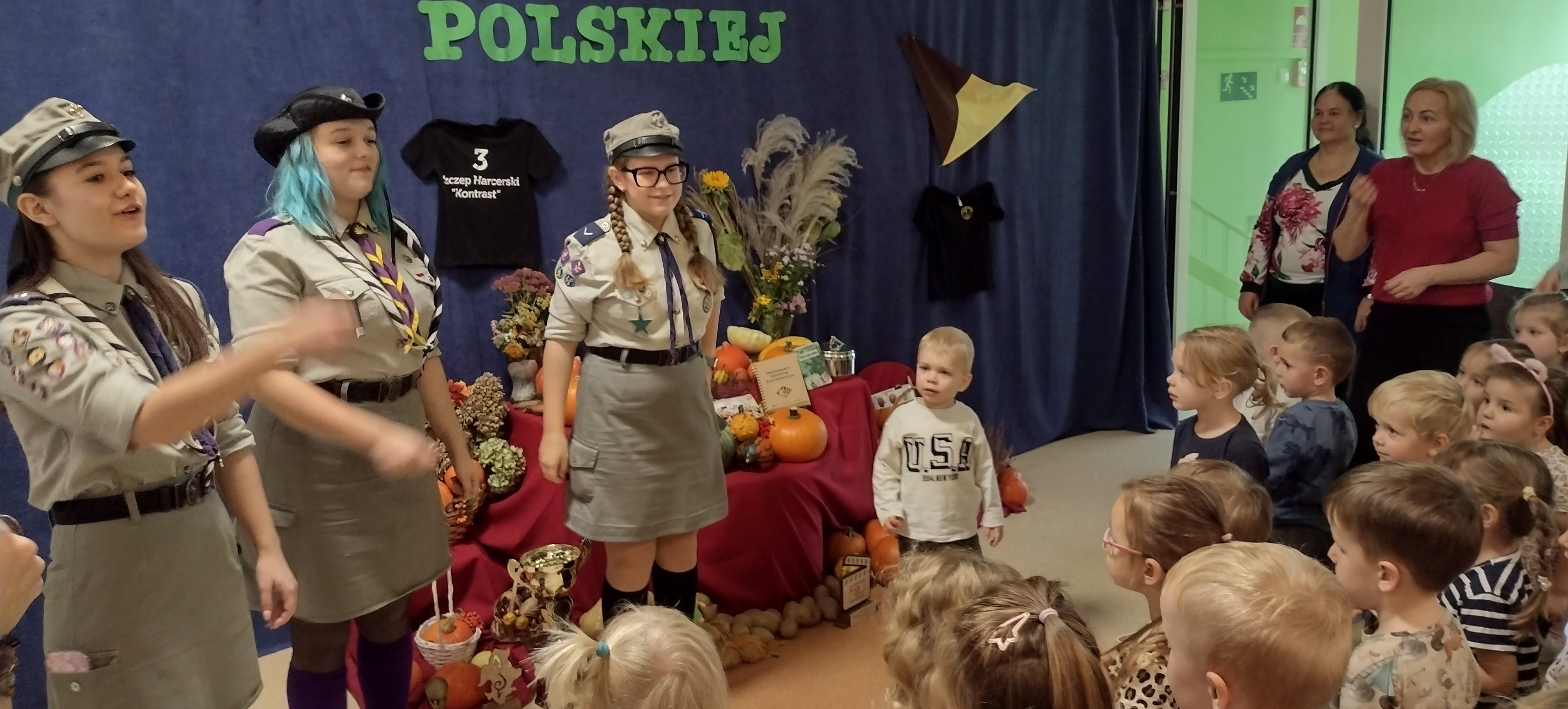 Czuwaj! 10 października obchodziliśmy w naszym przedszkolu Dzień Harcerki Polskiej. Z tej okazji gościliśmy harcerki z bełchatowskiego ZHP. Dzieci obejrzały prezentację o początkach harcerstwa na ziemiach polskich. Dziewczyny przekazały dzieciom najważniejsze informacje dotyczące współczesnego harcerstwa. Wytłumaczyły, czym zajmują się harcerze oraz na czym polega zdobywanie sprawności harcerskich. Dzieci miały okazję zobaczyć strój harcerki oraz odznaki sprawności harcerskich. Dziewczyny zaprosiły dzieci do wspólnych harcerskich zabaw, podczas których nasze przedszkolaki bawiły się świetnie! Bardzo dziękujemy za przyjęcie zaproszenia i za przekazanie tak wielu ciekawych informacji o harcerstwie naszym podopiecznym. Czuwaj!