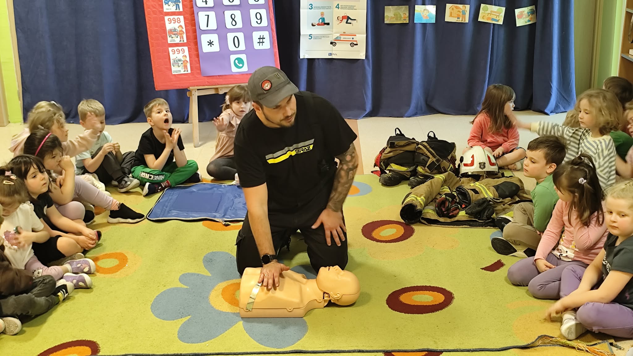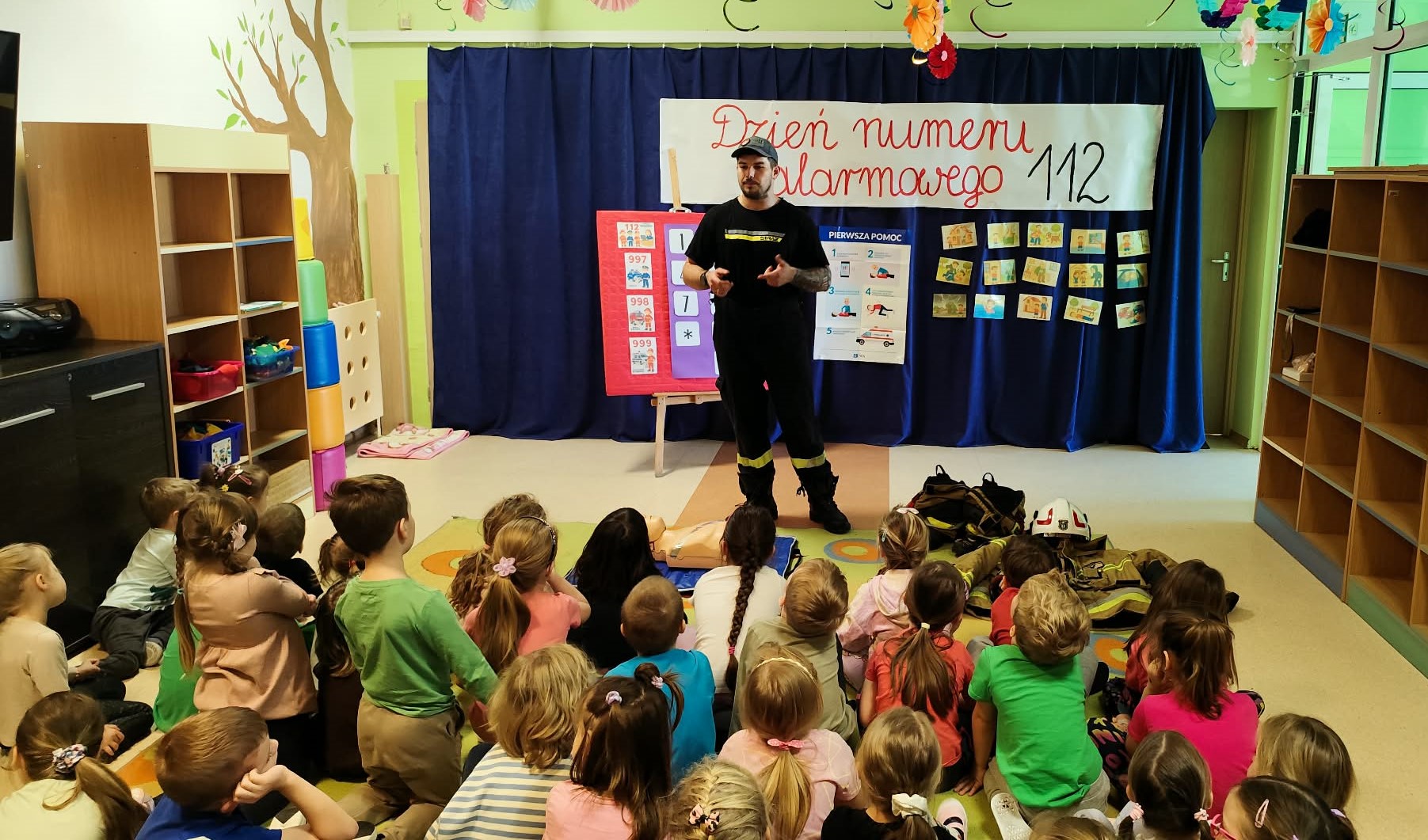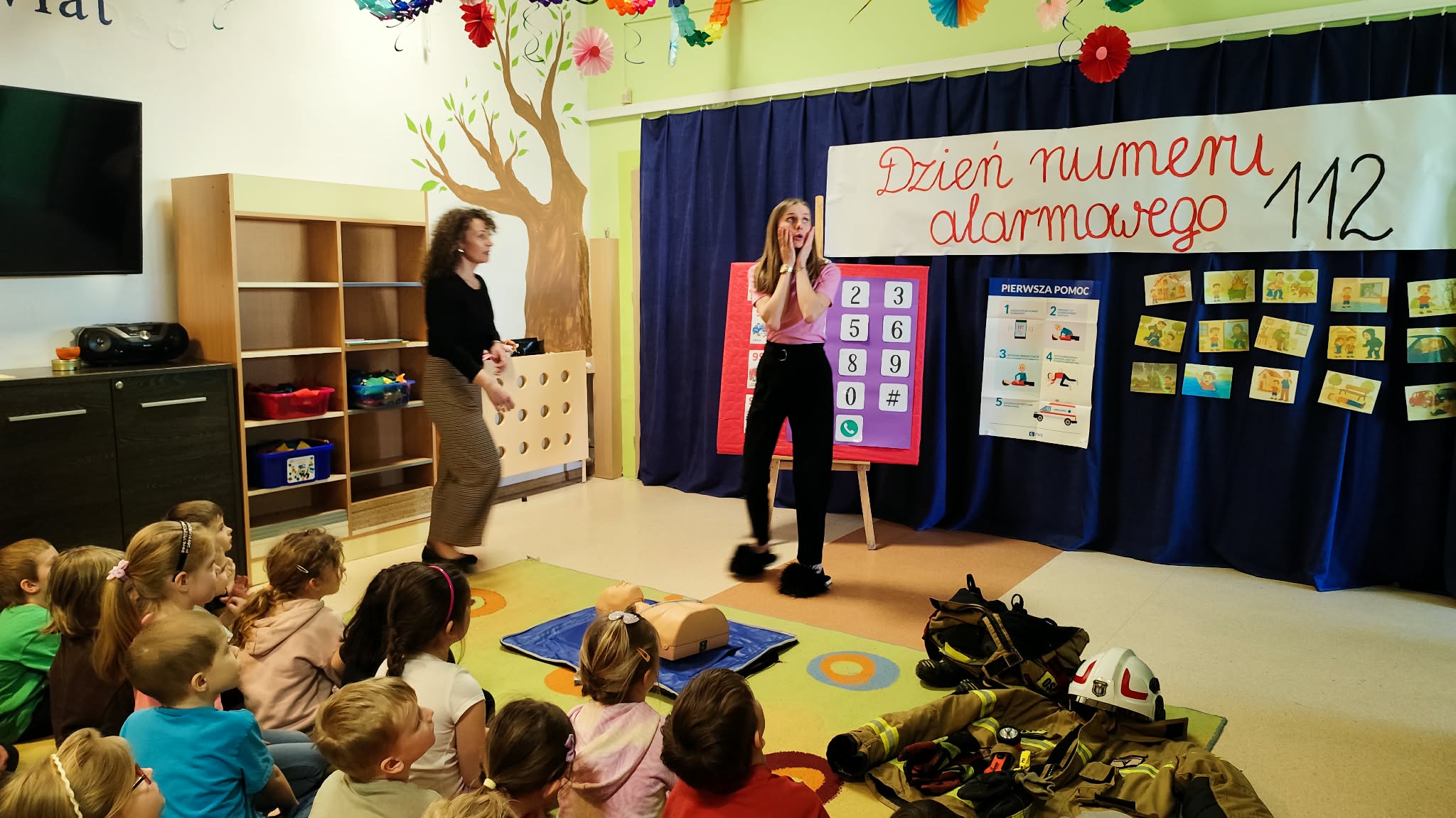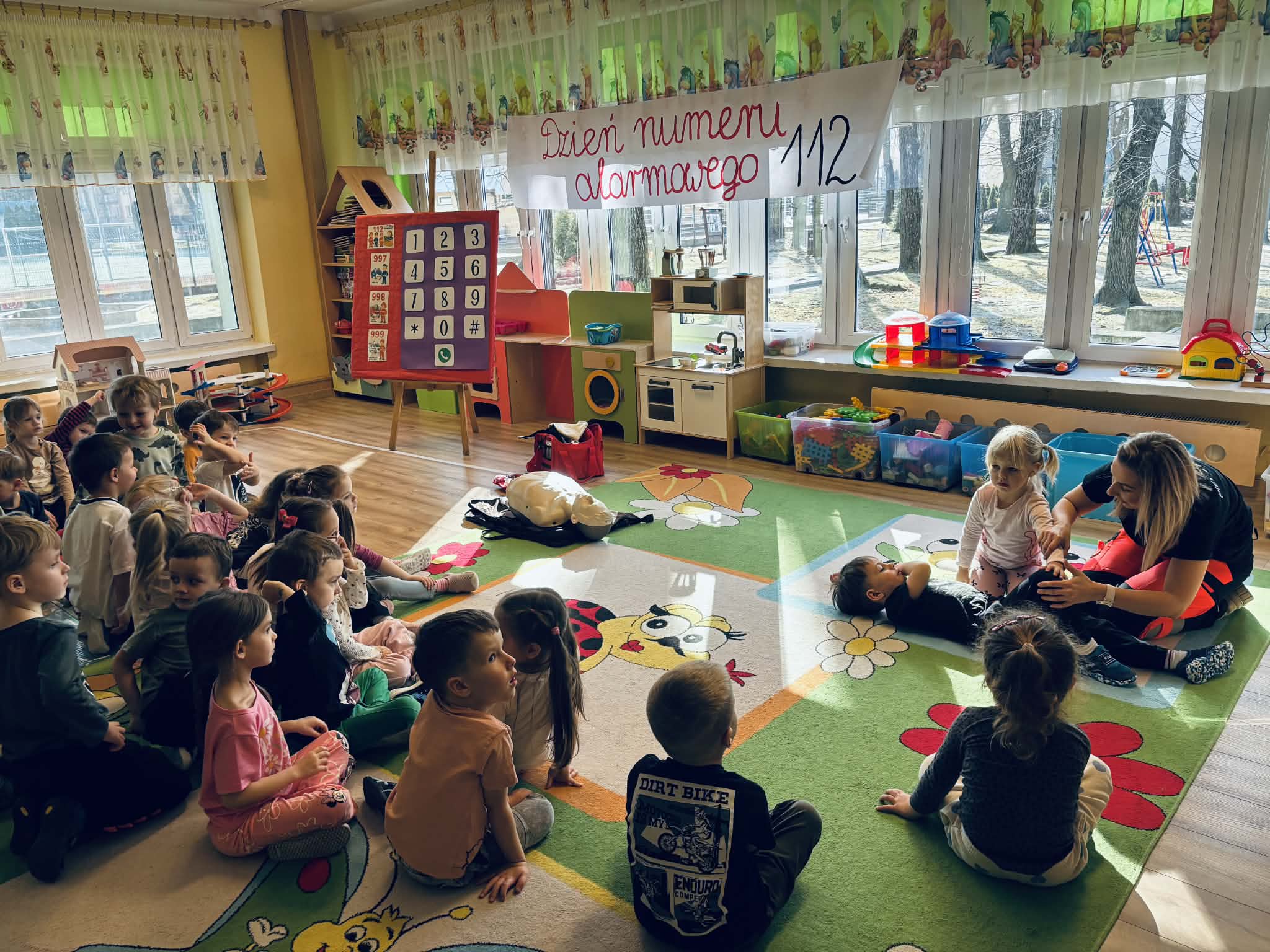 W ramach obchodzonego w naszym przedszkolu Dnia Numeru Alarmowego, 3 i 5 marca nasze przedszkolaki miały okazję uczestniczyć w zajęciach prowadzonych przez pracownika OSP oraz Panią Justynę - przyszłą pielęgniarkę. Goście przekazali dzieciom najważniejsze zasady udzielania pierwszej pomocy. Nasze przedszkolaki doskonale wiedzą, jaki numer wybrać, kiedy jest się w potrzebie. Bardzo dziękujemy za niezwykle cenną wiedzę, którą otrzymaliśmy podczas spotkania.