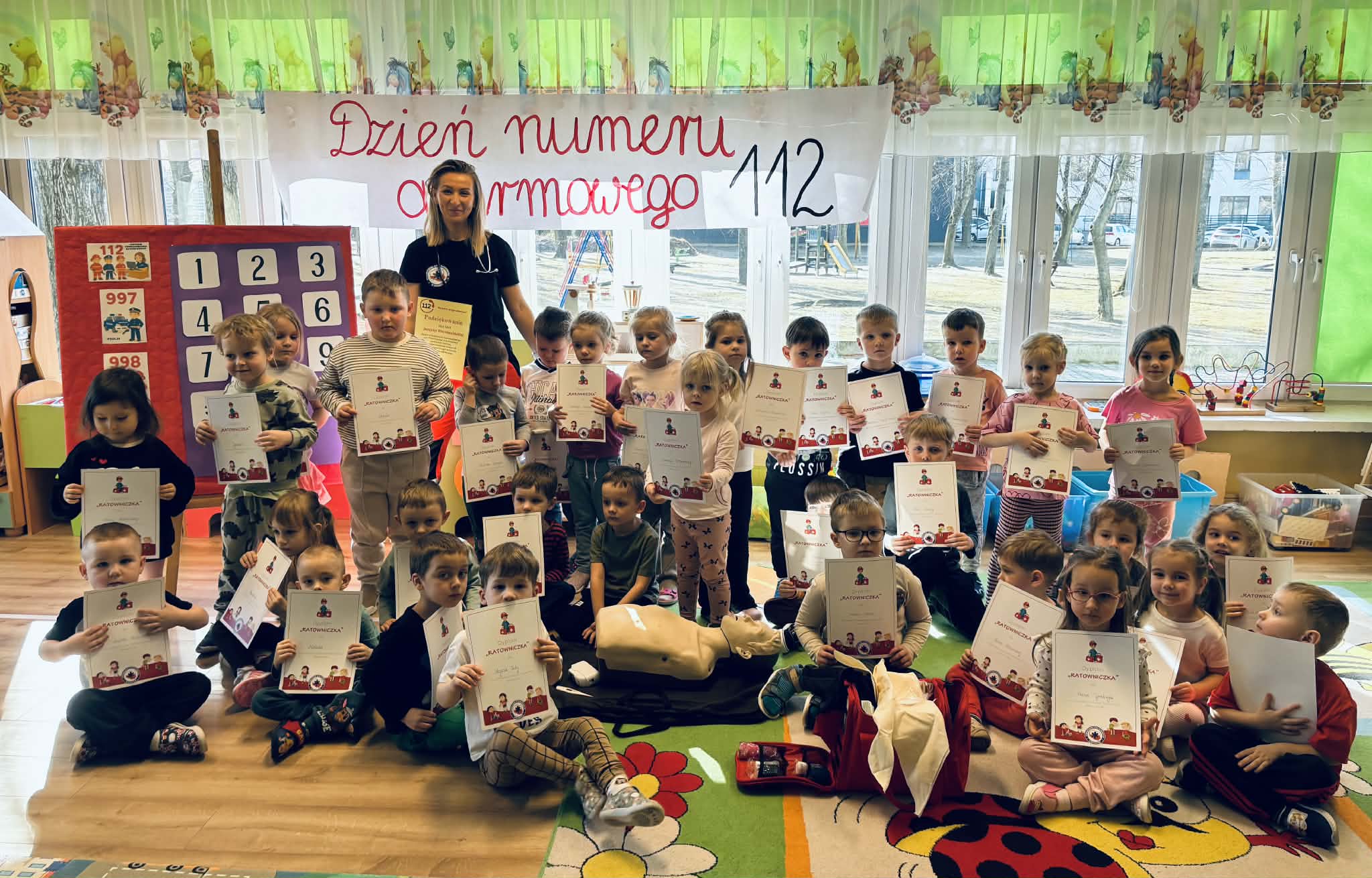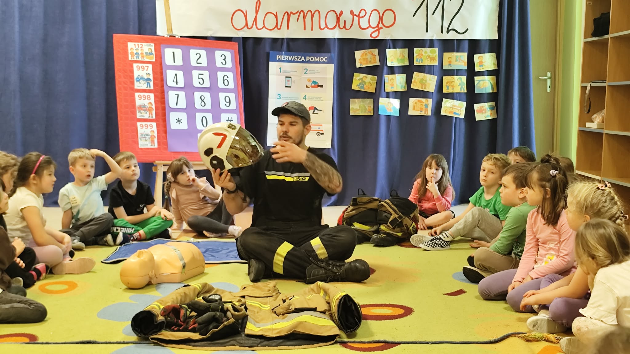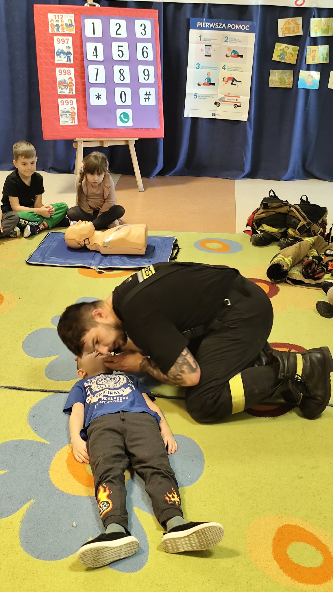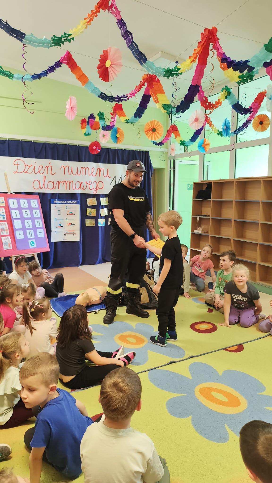 W ramach obchodzonego w naszym przedszkolu Dnia Numeru Alarmowego, 3 i 5 marca nasze przedszkolaki miały okazję uczestniczyć w zajęciach prowadzonych przez pracownika OSP oraz Panią Justynę - przyszłą pielęgniarkę. Goście przekazali dzieciom najważniejsze zasady udzielania pierwszej pomocy. Nasze przedszkolaki doskonale wiedzą, jaki numer wybrać, kiedy jest się w potrzebie. Bardzo dziękujemy za niezwykle cenną wiedzę, którą otrzymaliśmy podczas spotkania.