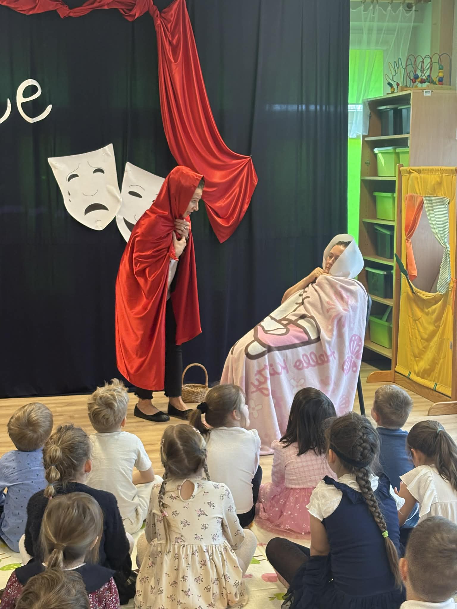 30 marca odbył się w naszym przedszkolu "Dzień Teatru". Dzieci zapoznały się z zasadami zachowania obowiązującymi w teatrze, odbyły wirtualny spacer po jednym z polskich teatrów, a także poznały różne rodzaje teatrów. Miały okazję zaprezentować pantomimę oraz zmierzyć się z aktorskim wyzwaniem naśladując różnorakie emocje. Przedszkolaki zobaczyły inscenizacje krótkich opowiastek przy wykorzystaniu różnych rodzajów lalek: pacynek, kukiełek i marionetek, a także obejrzały improwizowany fragment bajki pt.:"Czerwony Kapturek" z wykorzystaniem rekwizytów, którymi były otaczające nas na co dzień przedmioty. Zabawy w teatr rozwijają kreatywność i umiejętności społeczne, dlatego gorąco zachęcamy dzieciaki do tworzenia swoich własnych teatrzyków!