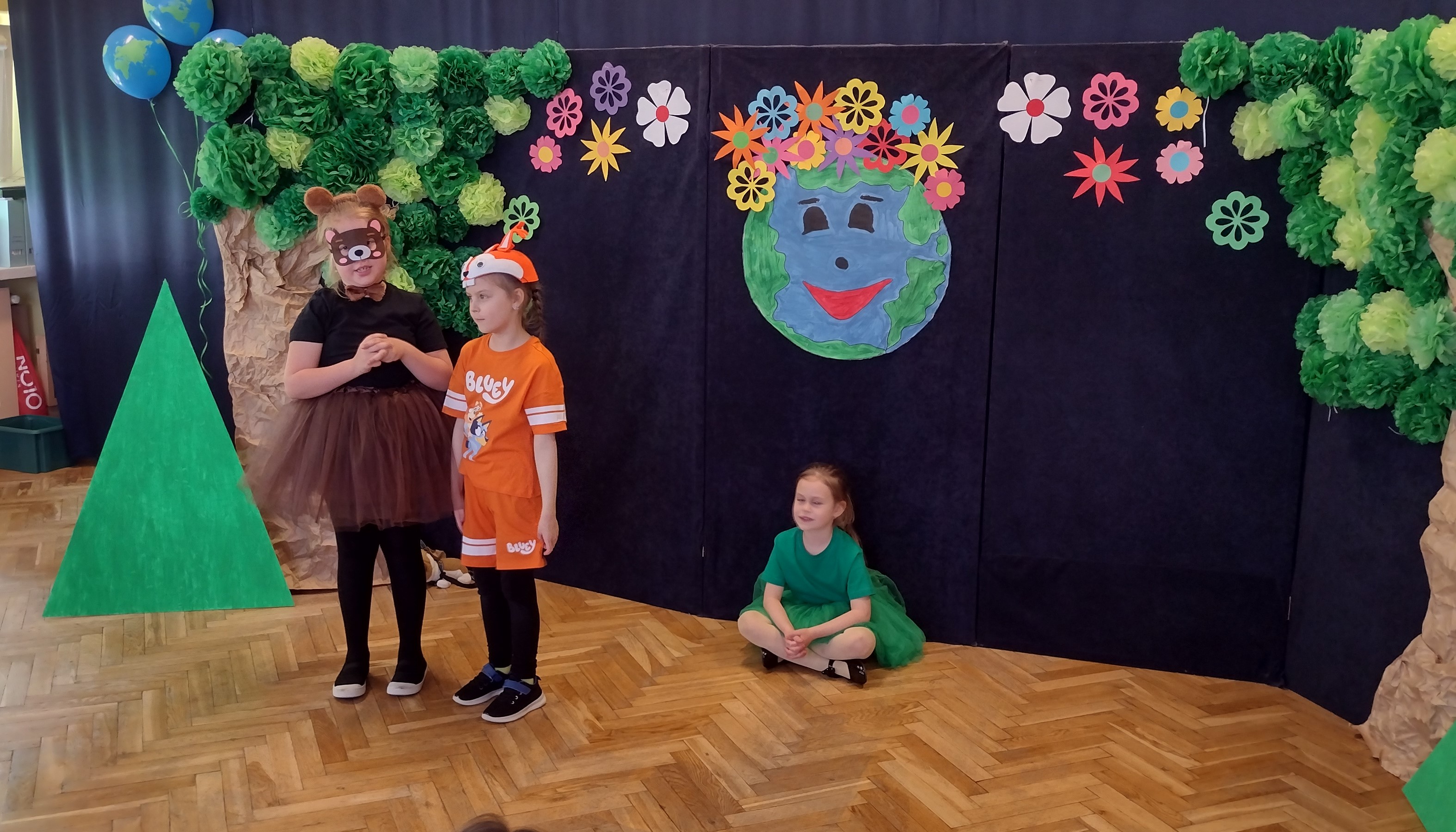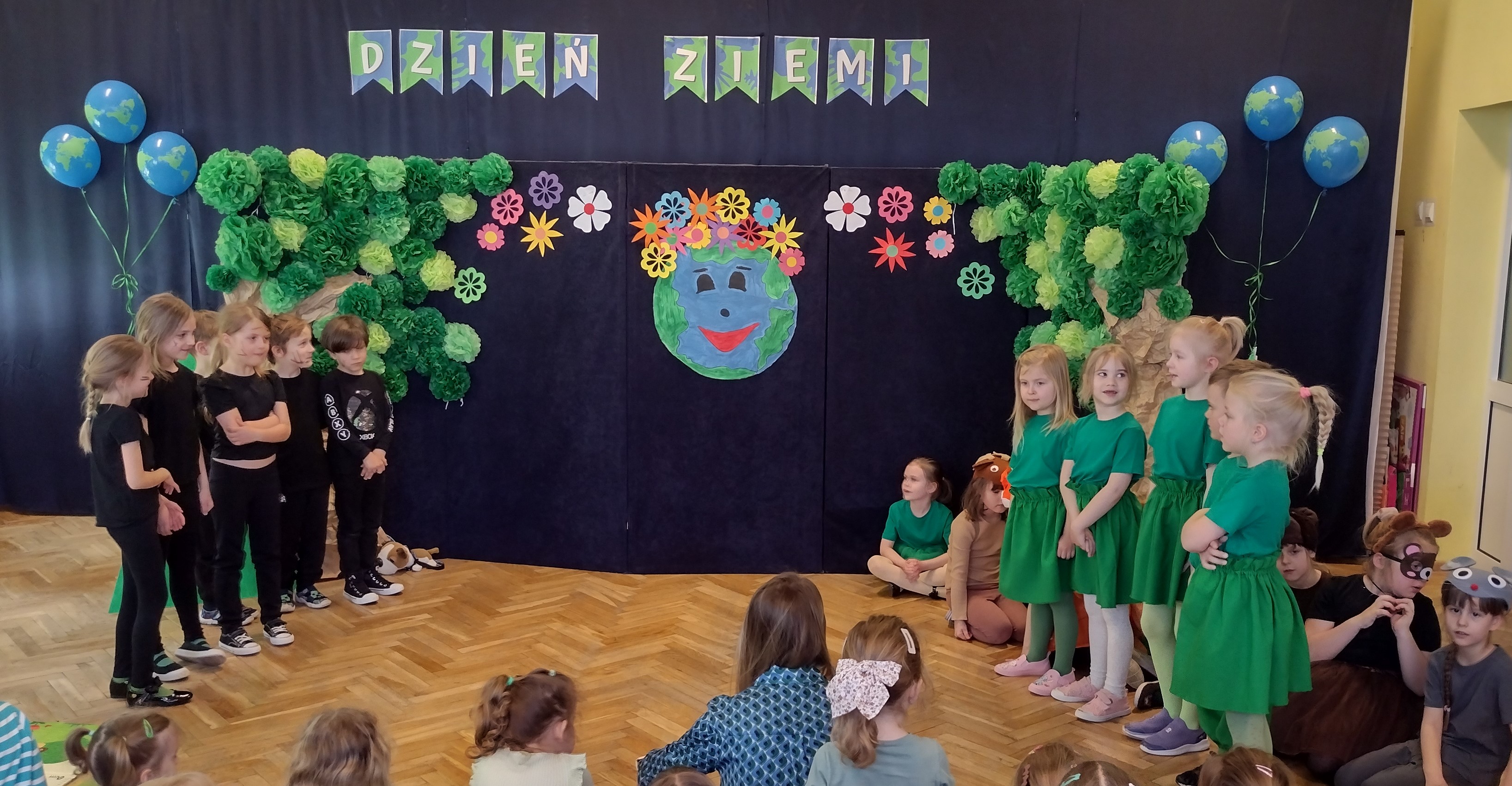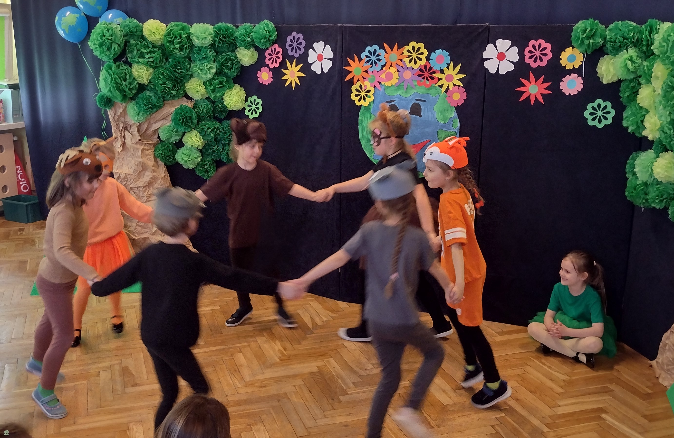 24 kwietnia odbył się w naszym przedszkolu Dzień Ziemi. Grupa starszaków swoim występem zabrała dzieci w podróż po lesie, w którym wśród żyjących tam zwierząt i leśnych skrzatów, pojawili się wandale. Przedstawienie było doskonałą okazją do ukazania dzieciom zagrożeń, jakie może nieść ze sobą niewłaściwe zachowanie ludzi względem otaczającej ich przyrody.
