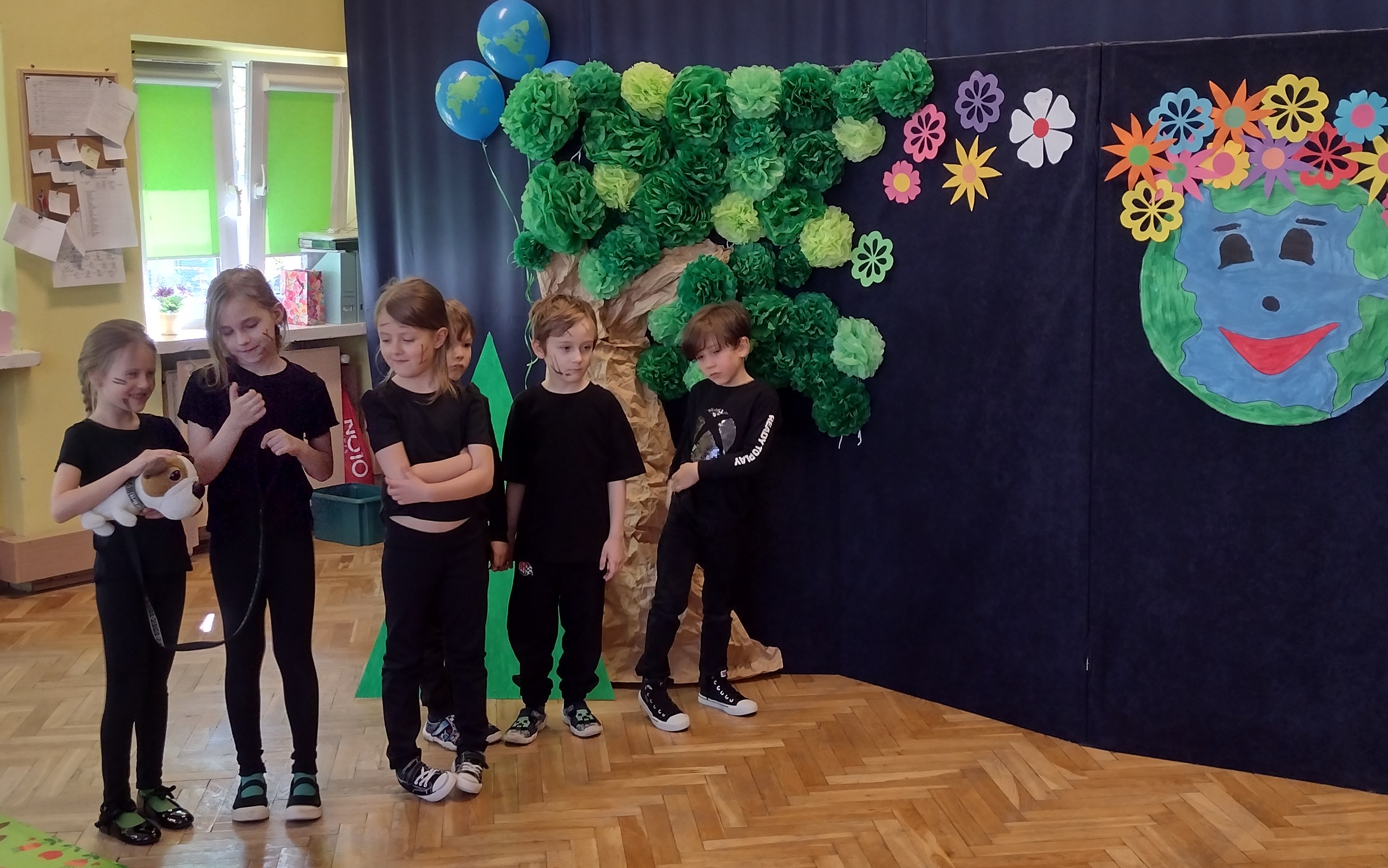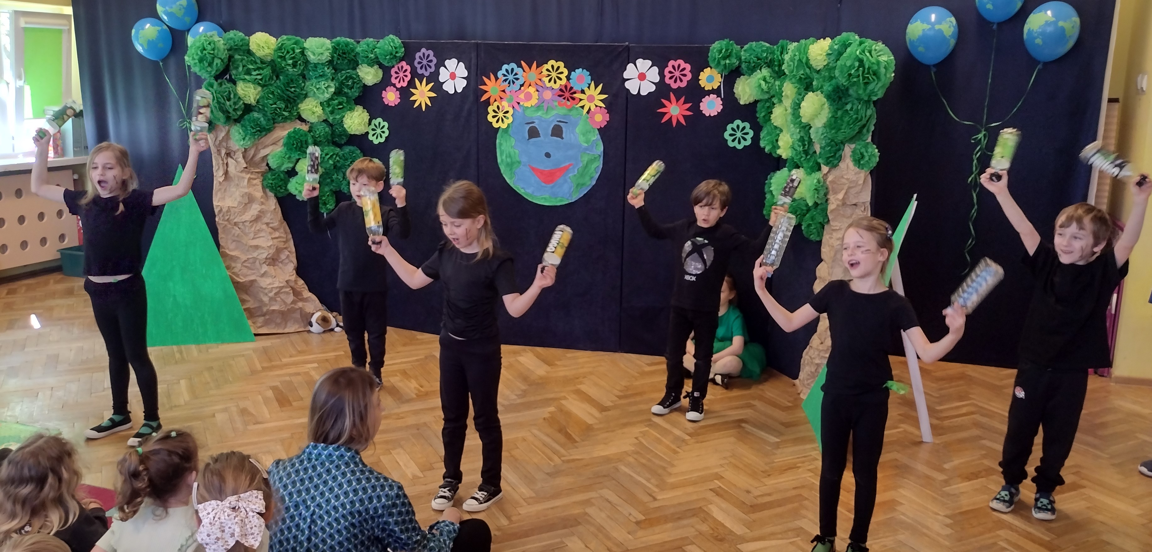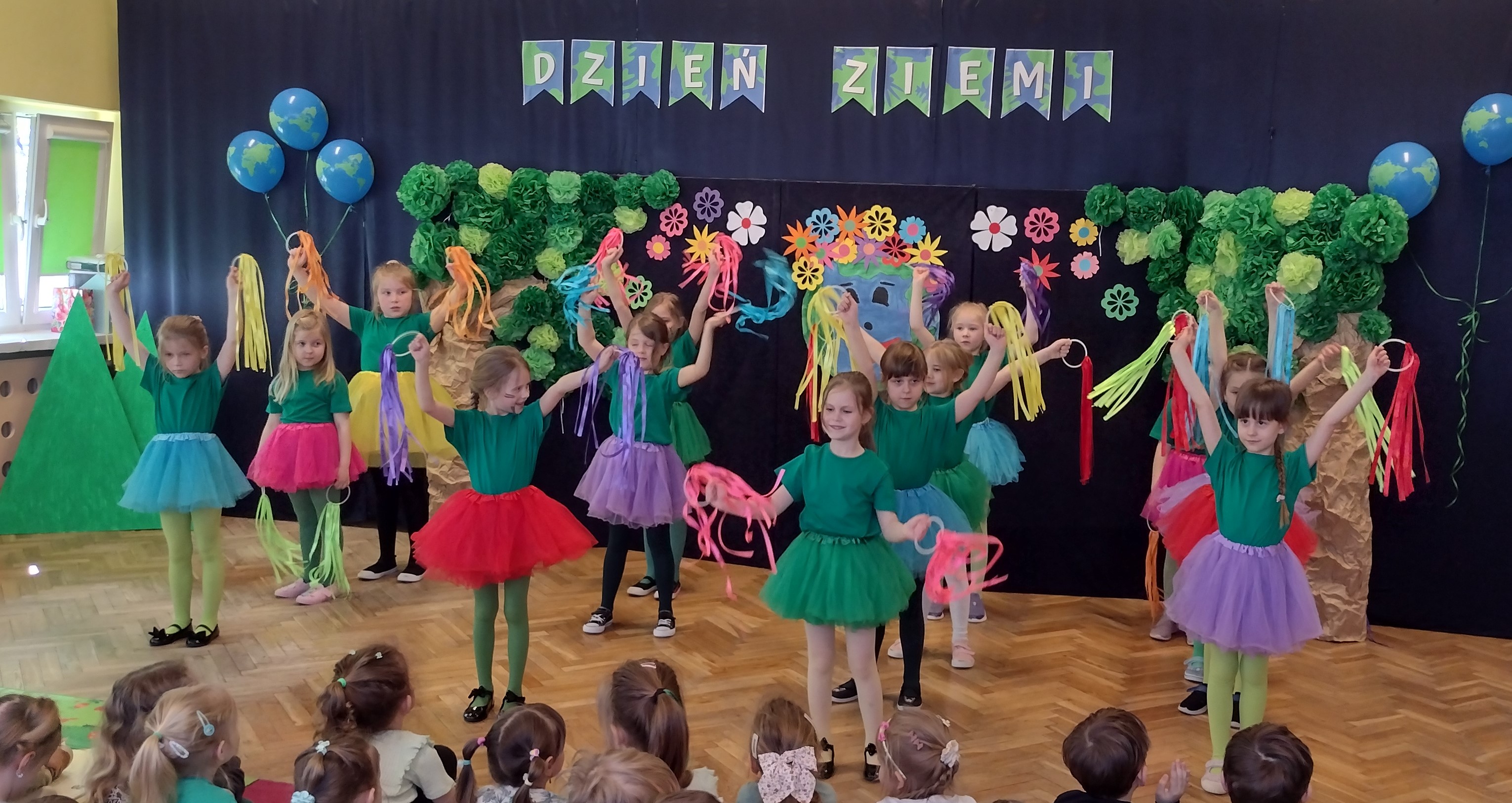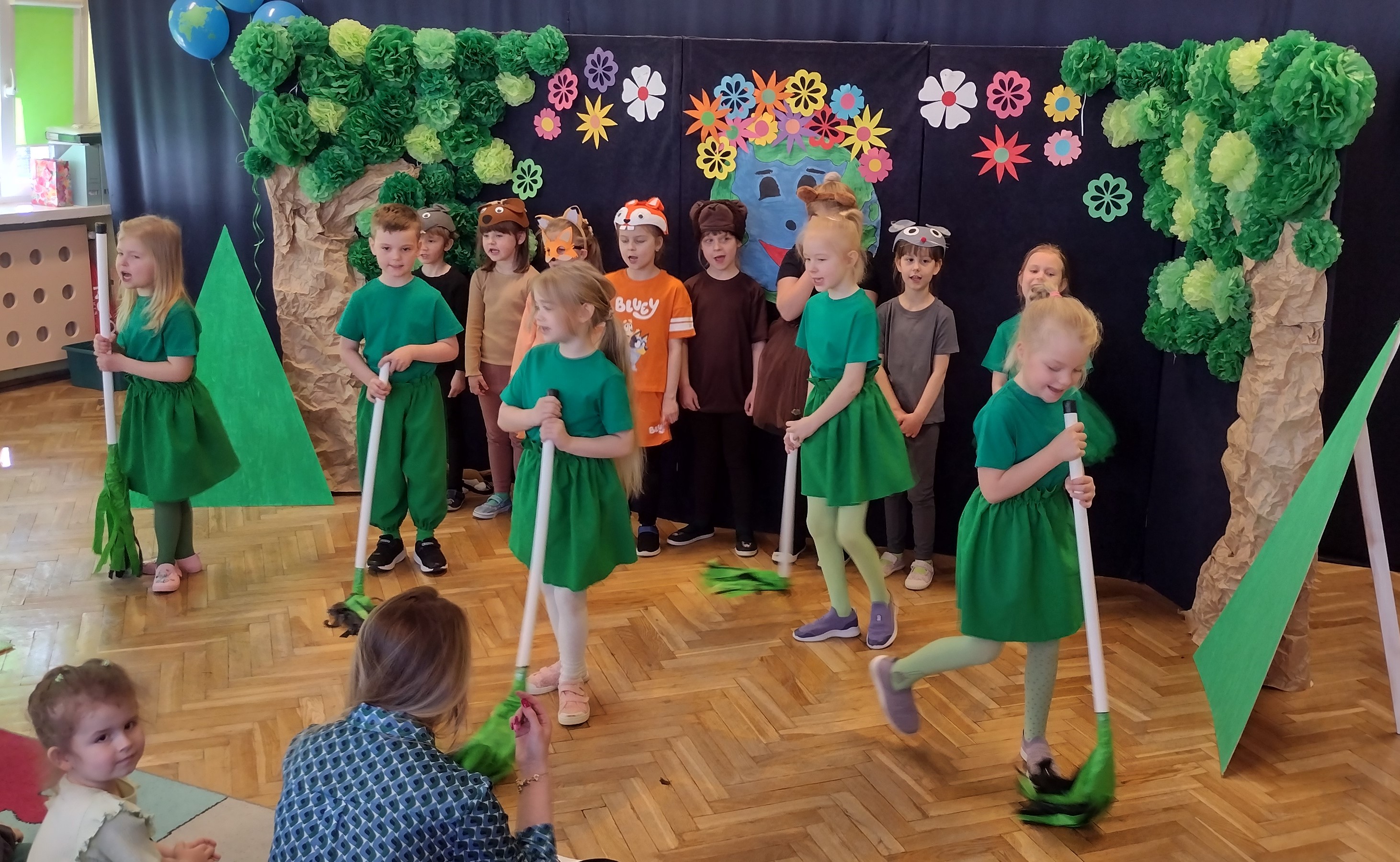 24 kwietnia odbył się w naszym przedszkolu Dzień Ziemi. Grupa starszaków swoim występem zabrała dzieci w podróż po lesie, w którym wśród żyjących tam zwierząt i leśnych skrzatów, pojawili się wandale. Przedstawienie było doskonałą okazją do ukazania dzieciom zagrożeń, jakie może nieść ze sobą niewłaściwe zachowanie ludzi względem otaczającej ich przyrody.