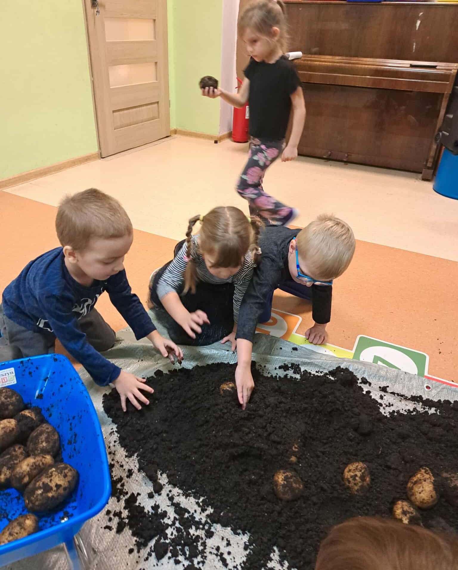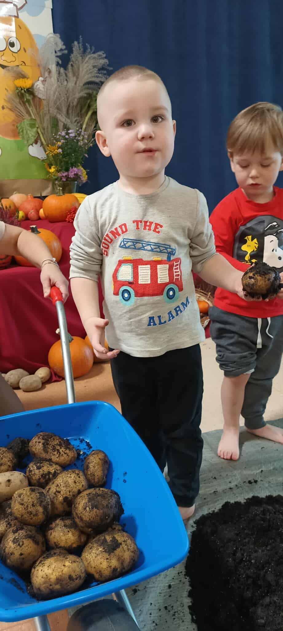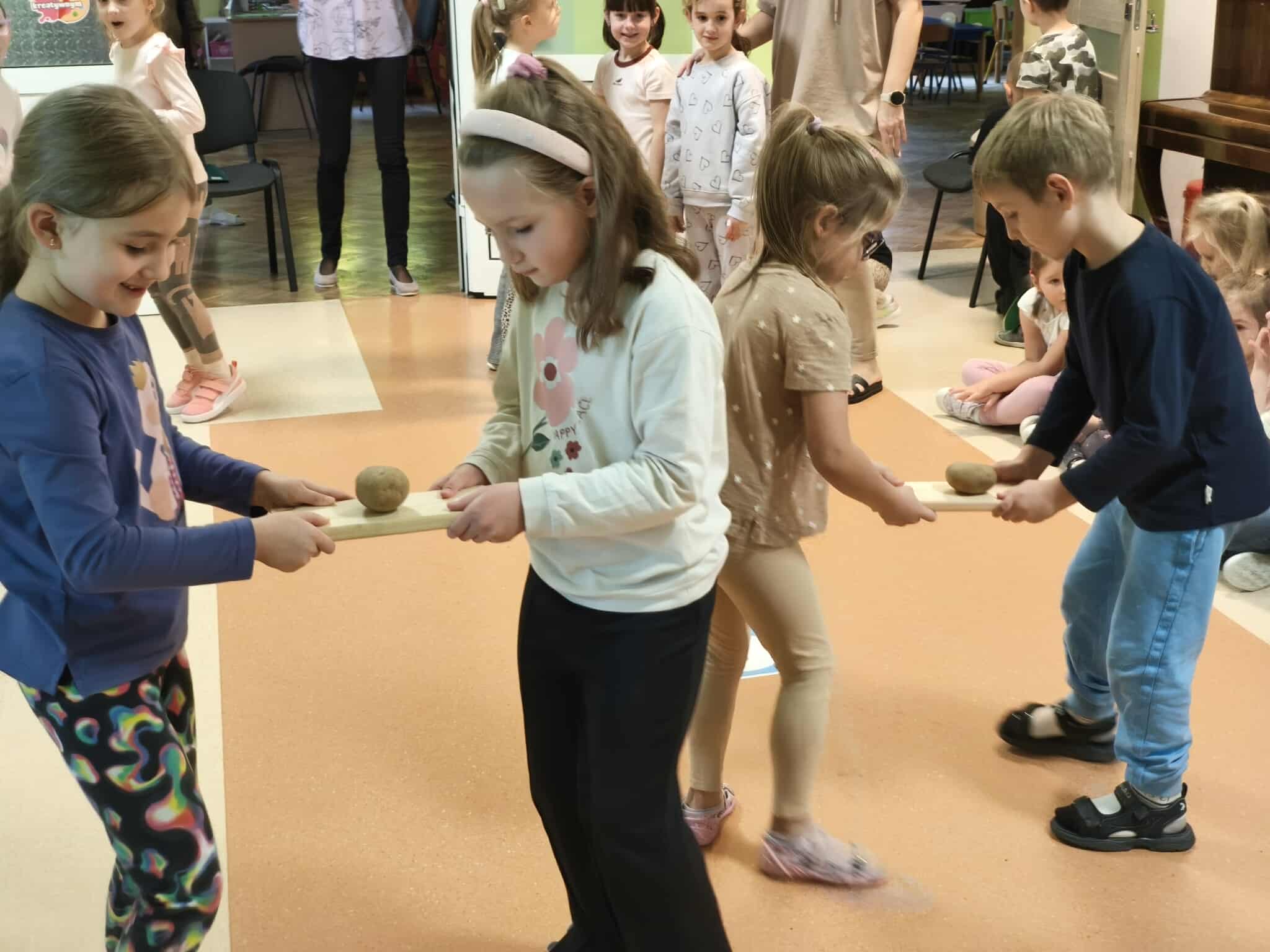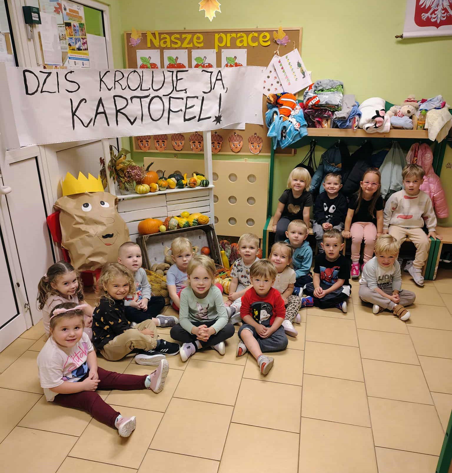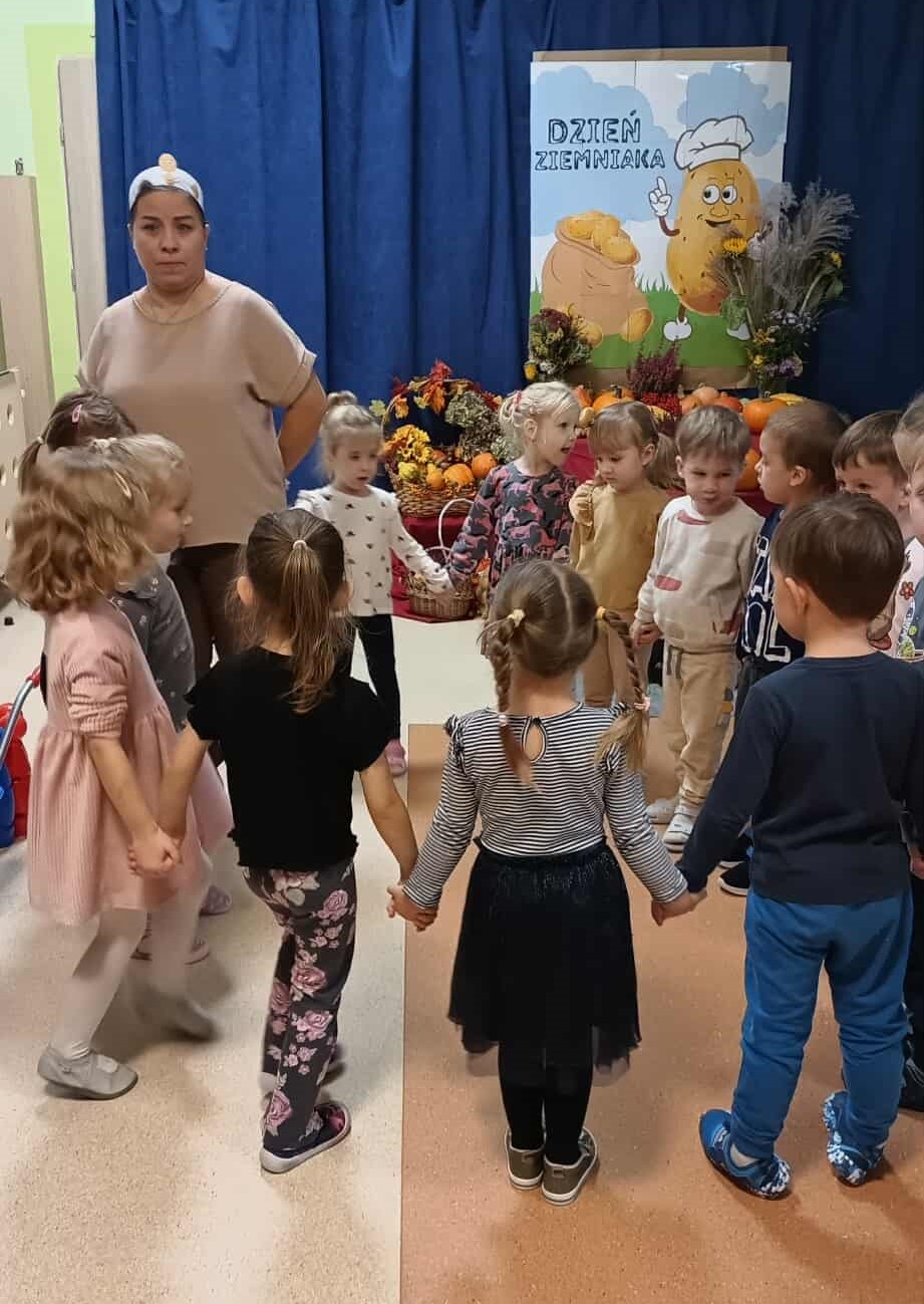 Pyry, kartofle, bulwy, grule, barabole czyli... oczywiście ziemniaki. 9 października w naszym przedszkolu królowały kartofle. Dzieci uczestniczyły w grach i zabawach z udziałem tego tak popularnego w Polsce warzywa. Przeprowadzały wykopki, grały w ziemniaczane kręgle, pokonywały ziemniaczane slalomy oraz uczestniczyły w wyścigach w workach. Śmiechu i zabawy było mnóstwo. Również podwieczorek był w tym dniu wyjątkowy - na dzieci czekały pyszne frytki.