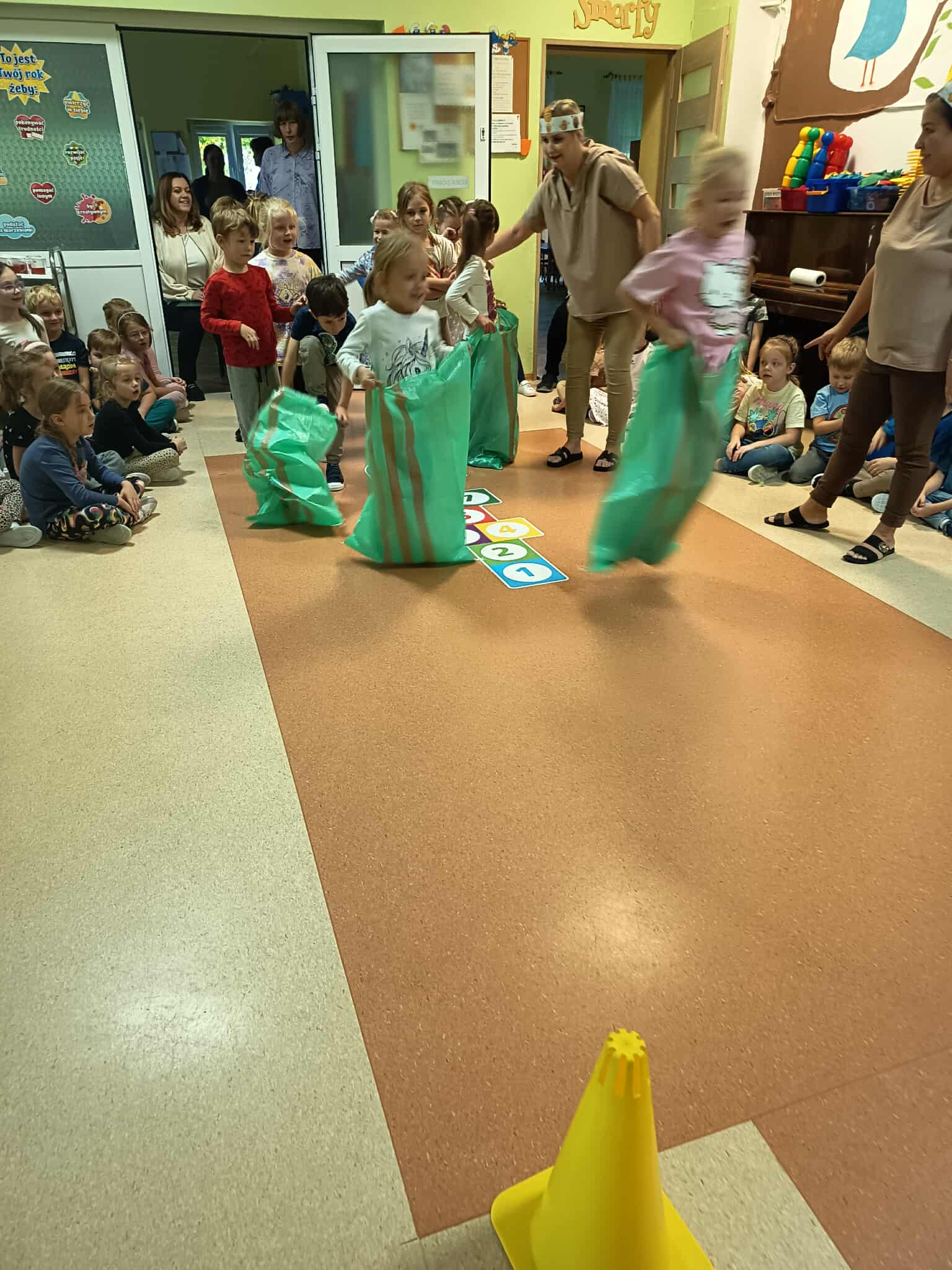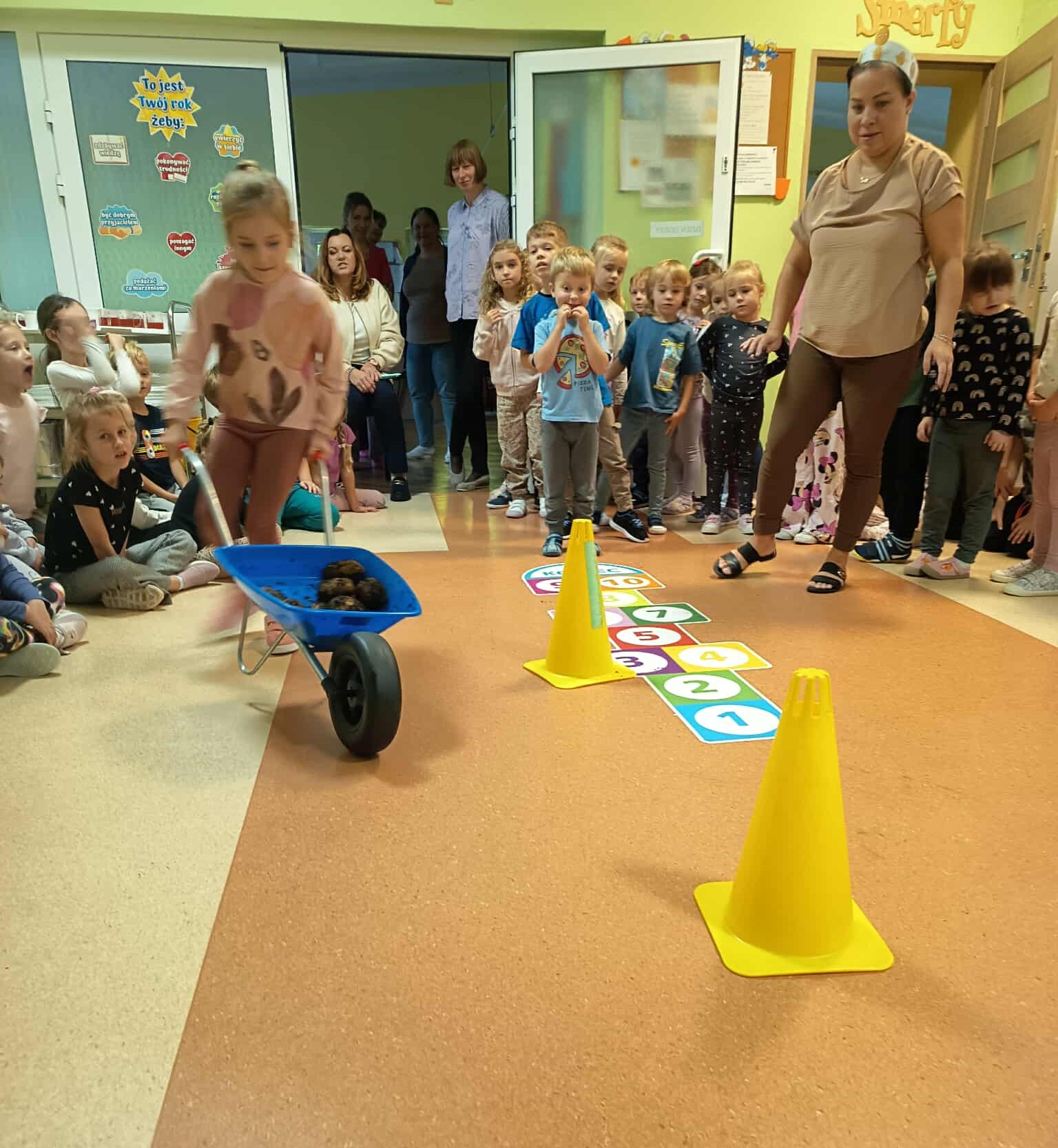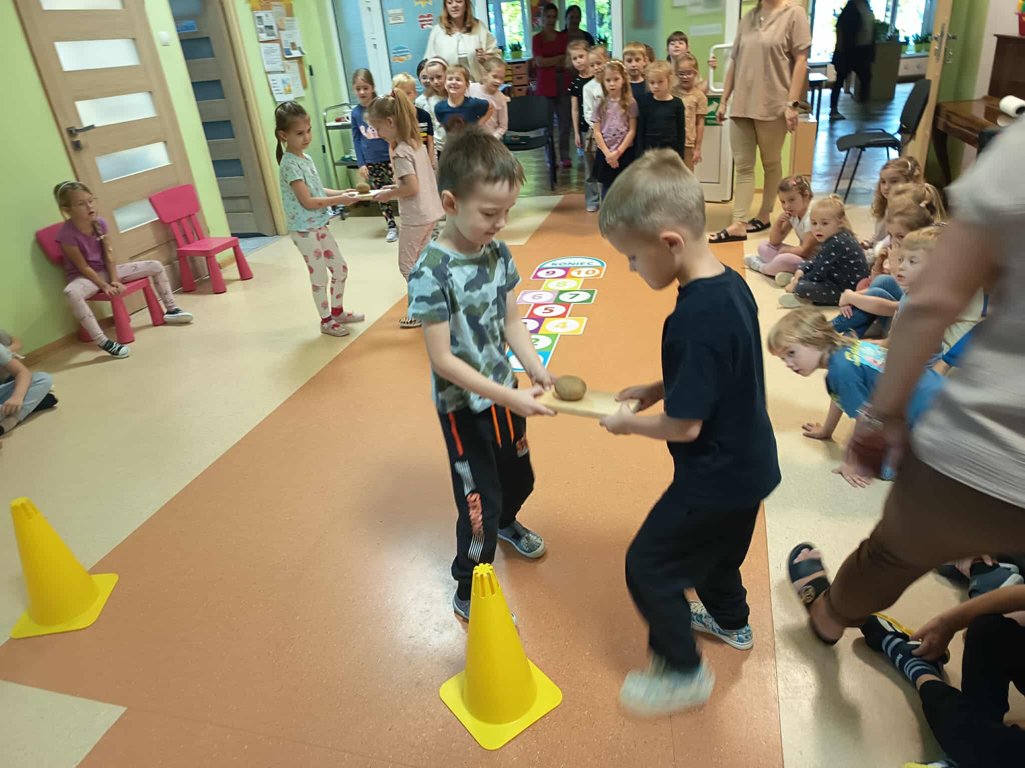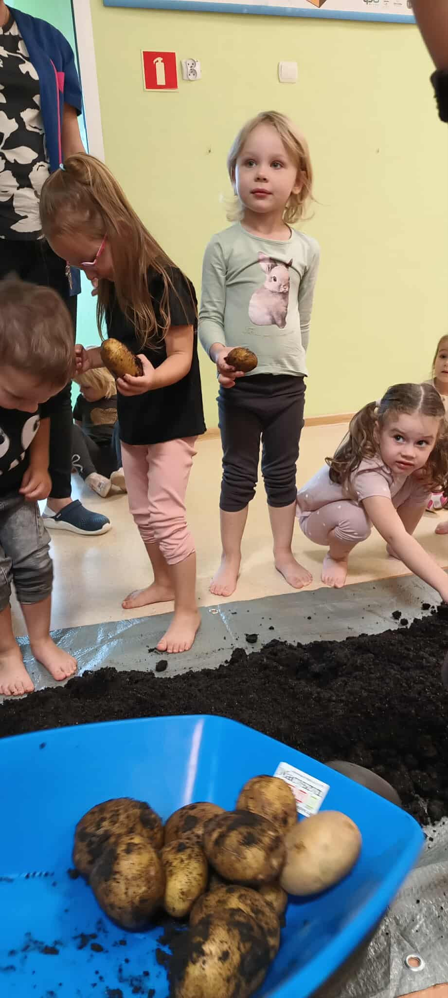 Pyry, kartofle, bulwy, grule, barabole czyli... oczywiście ziemniaki. 9 października w naszym przedszkolu królowały kartofle. Dzieci uczestniczyły w grach i zabawach z udziałem tego tak popularnego w Polsce warzywa. Przeprowadzały wykopki, grały w ziemniaczane kręgle, pokonywały ziemniaczane slalomy oraz uczestniczyły w wyścigach w workach. Śmiechu i zabawy było mnóstwo. Również podwieczorek był w tym dniu wyjątkowy - na dzieci czekały pyszne frytki.