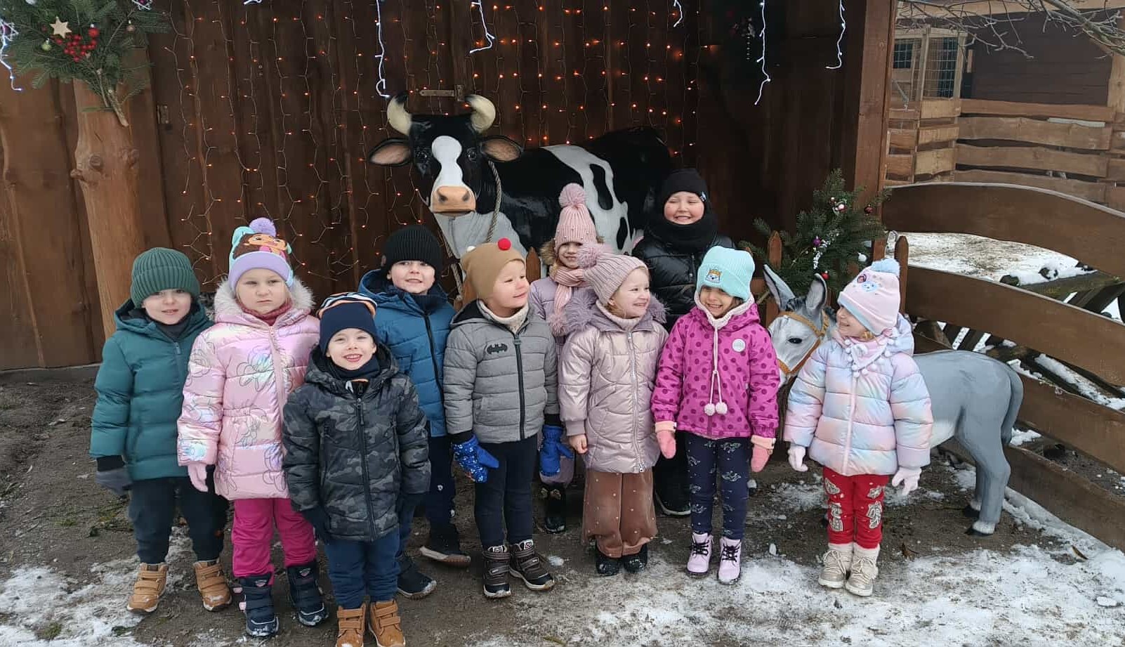 Natomiast 1 grudnia swoją wycieczkę zimową porą odbyły do Agroturystyki Markowa Kraina w Niedyszynie dzieci z grup Motylków, Misiów oraz Biedronek. Dzieci karmiły zwierzęta w wiejskiej zagrodzie, dekorowały pierniki i bombki oraz wykonały bałwankowe ozdoby na choinkę. Był również czas na zabawę z Wielkim Białym Misiem, a po wspólnych tańcach dzieci posiliły się kiełbaskami i ciepłą herbatą. Na koniec każde dziecko miało okazję usiąść obok Mikołaja i wyszeptać mu swoje życzenie. To były wycieczki pełne wrażeń!