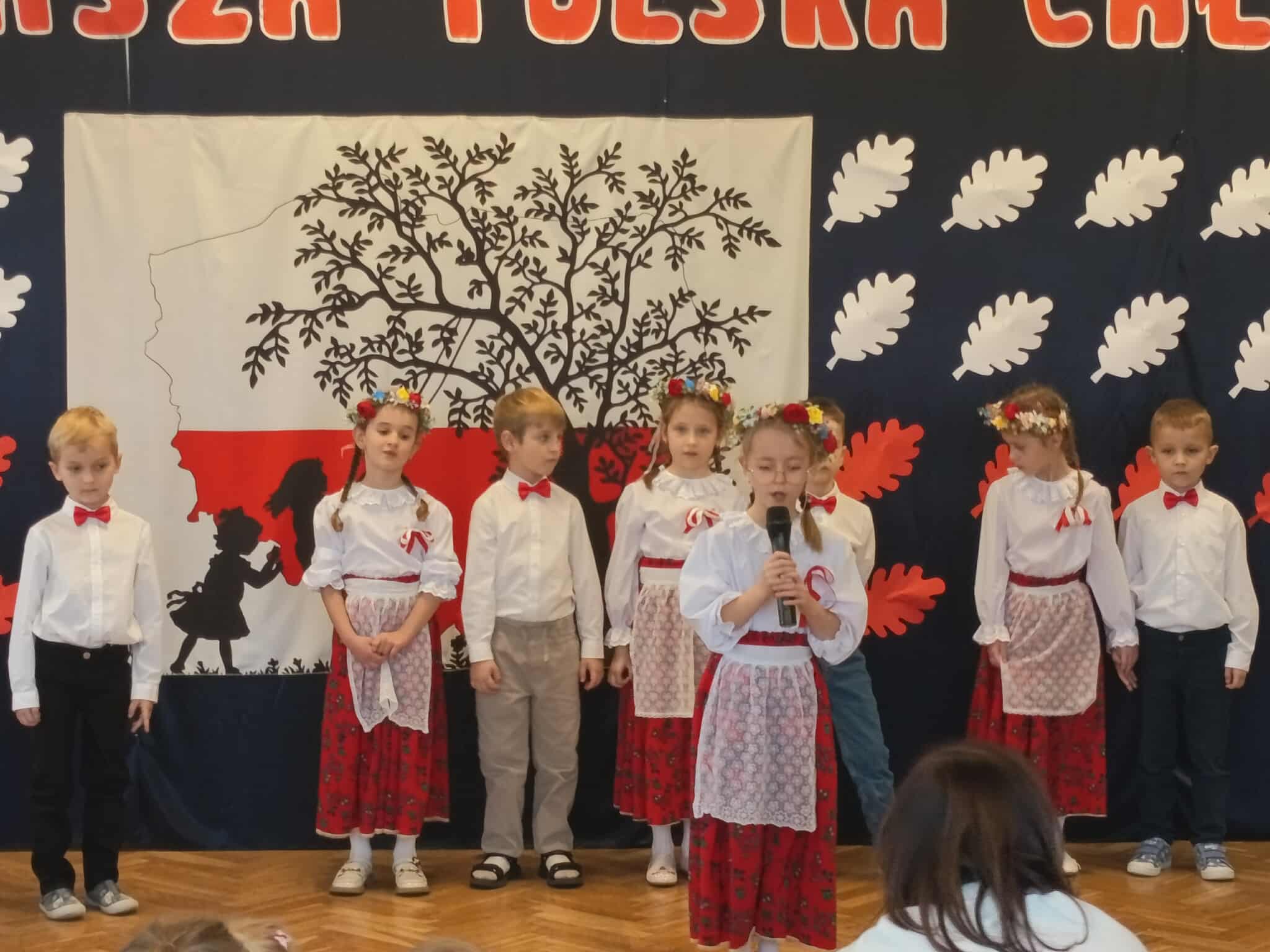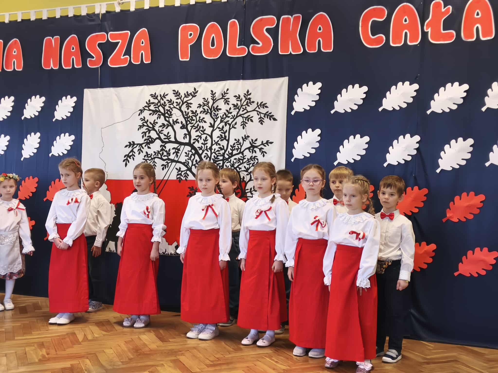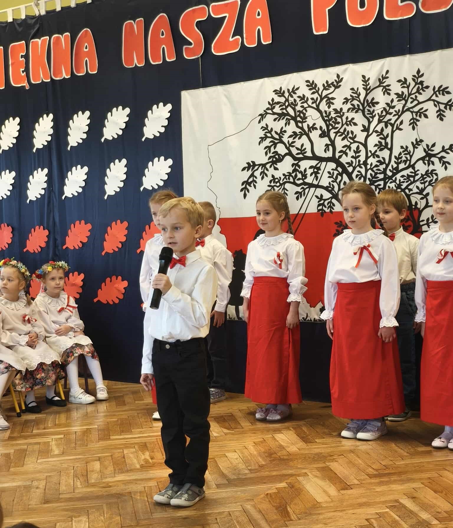 5 listopada obchodziliśmy w naszym przedszkolu uroczystość z okazji Dnia Niepodległości. Dzieci z grupy Smerfów przygotowały wspaniały występ kultywujący polskie tradycje i ukazujący piękno naszej ojczyzny. Dzieci zabrały gości w podróż po naszym kraju, prezentując jedne z najbardziej znanych i ważnych miast polskich- Zakopane, Kraków, Warszawę, Toruń oraz Gdańsk. Uroczystość uświetniły patriotyczne pieśni i wiersze oraz wspaniałe polskie tańce- polonez, krakowiak oraz trojak w wykonaniu grupy Smerfów.