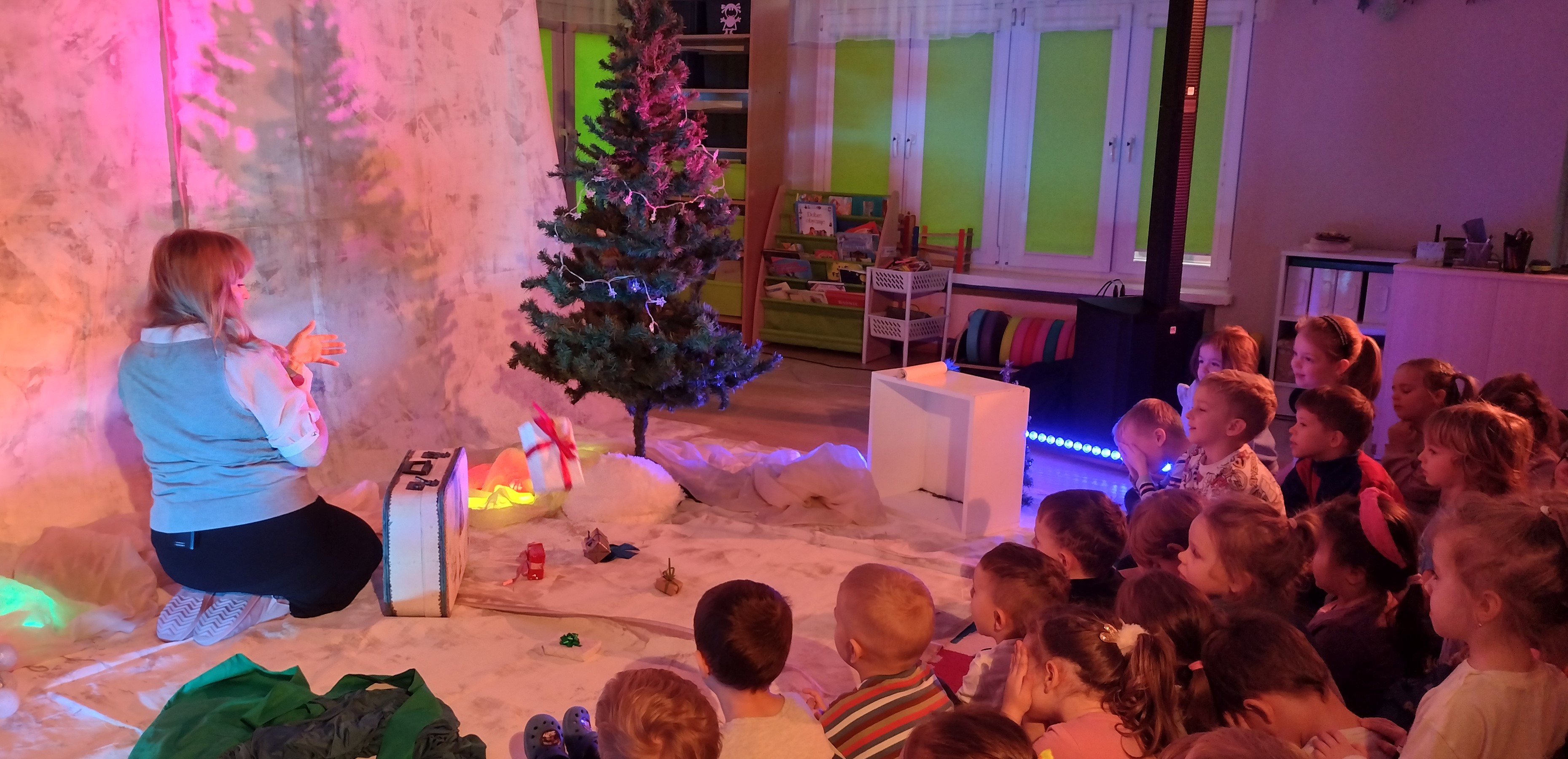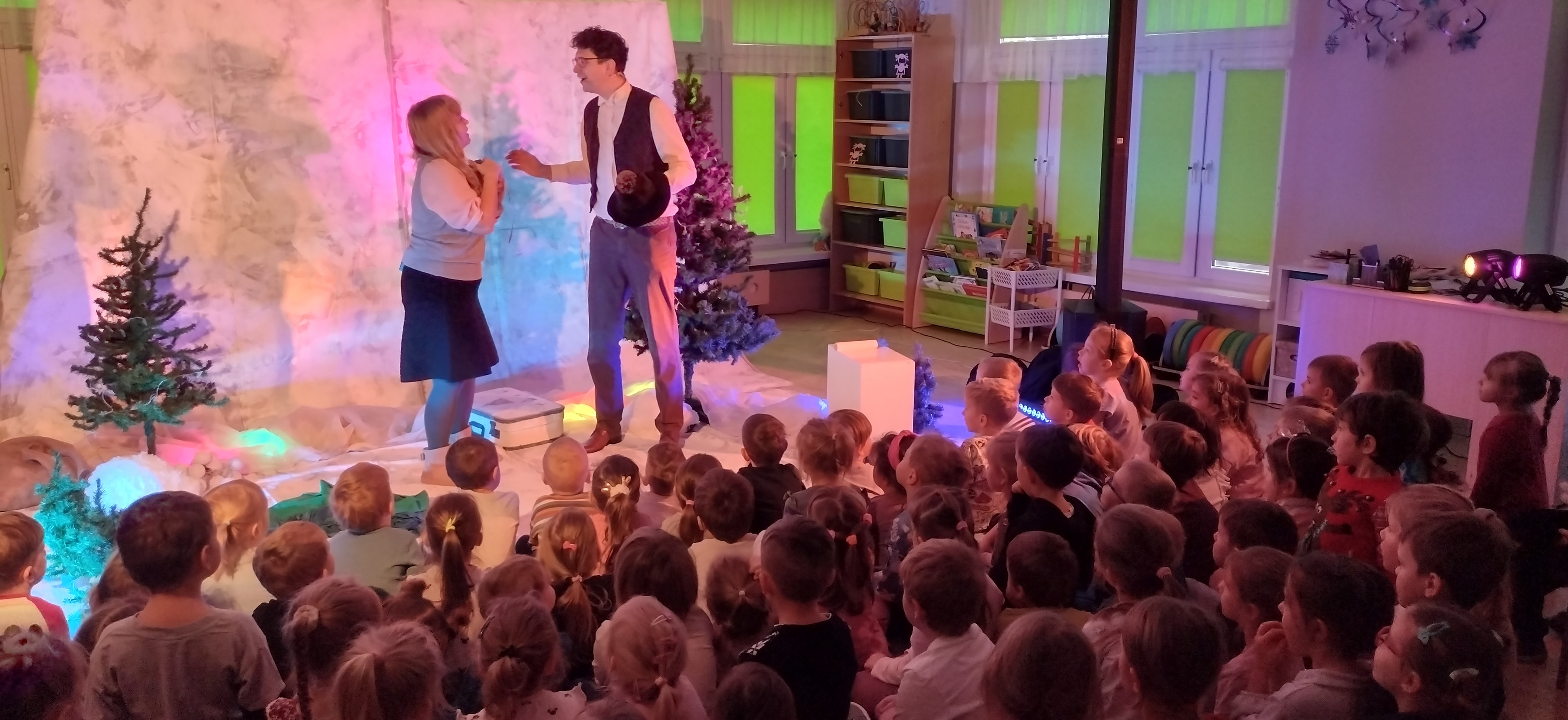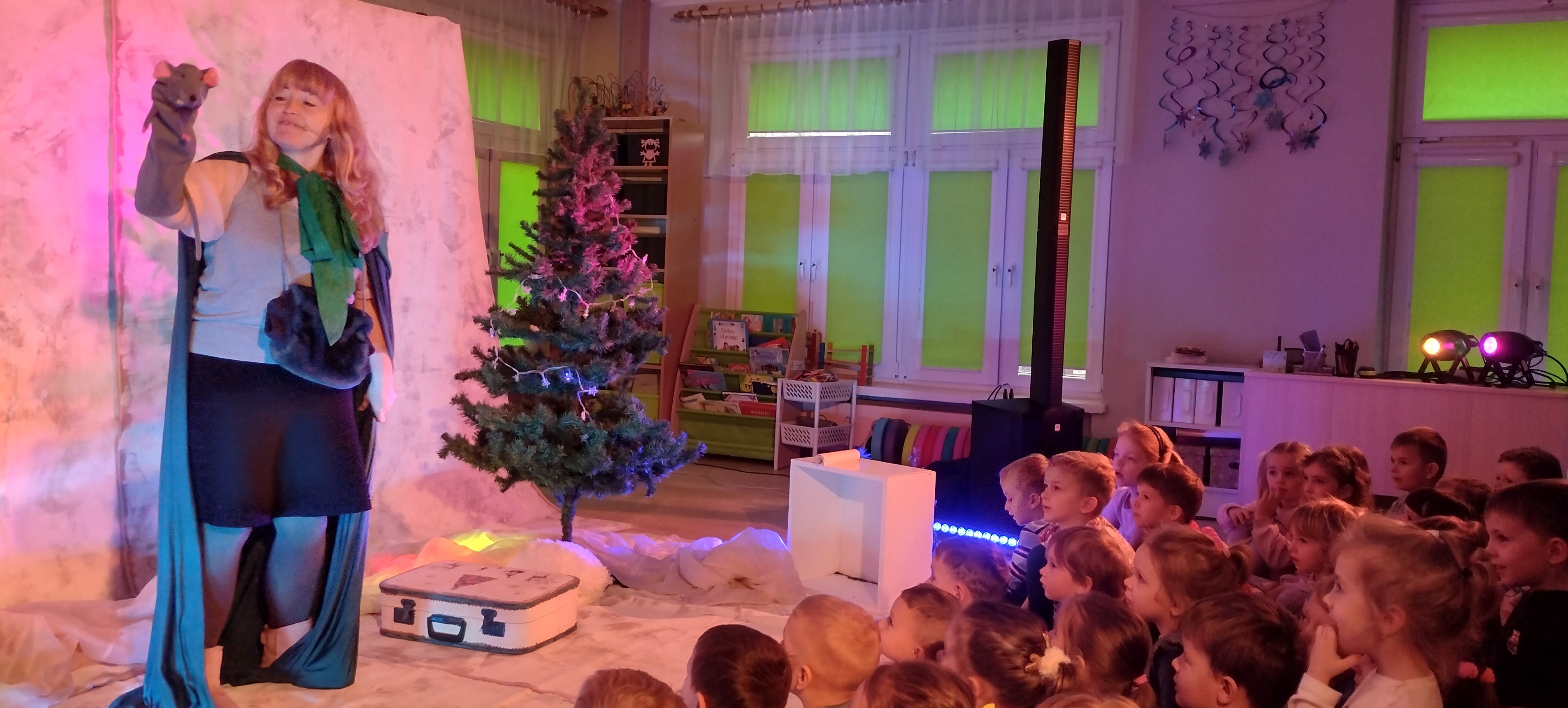 8 grudnia gościliśmy w naszym przedszkolu aktorów z Łodzi, którzy przedstawieniem "Myszka Tup Tup- w poszukiwaniu gwiazdkowego prezentu" wprowadzili nas w magiczny czas oczekiwania na zbliżające się Święta Bożego Narodzenia. Dzieci przekonały się, że w tym szczególnym czasie nie prezenty są najważniejsze, a nasi najbliżsi, z którymi możemy dzielić naszą radość.