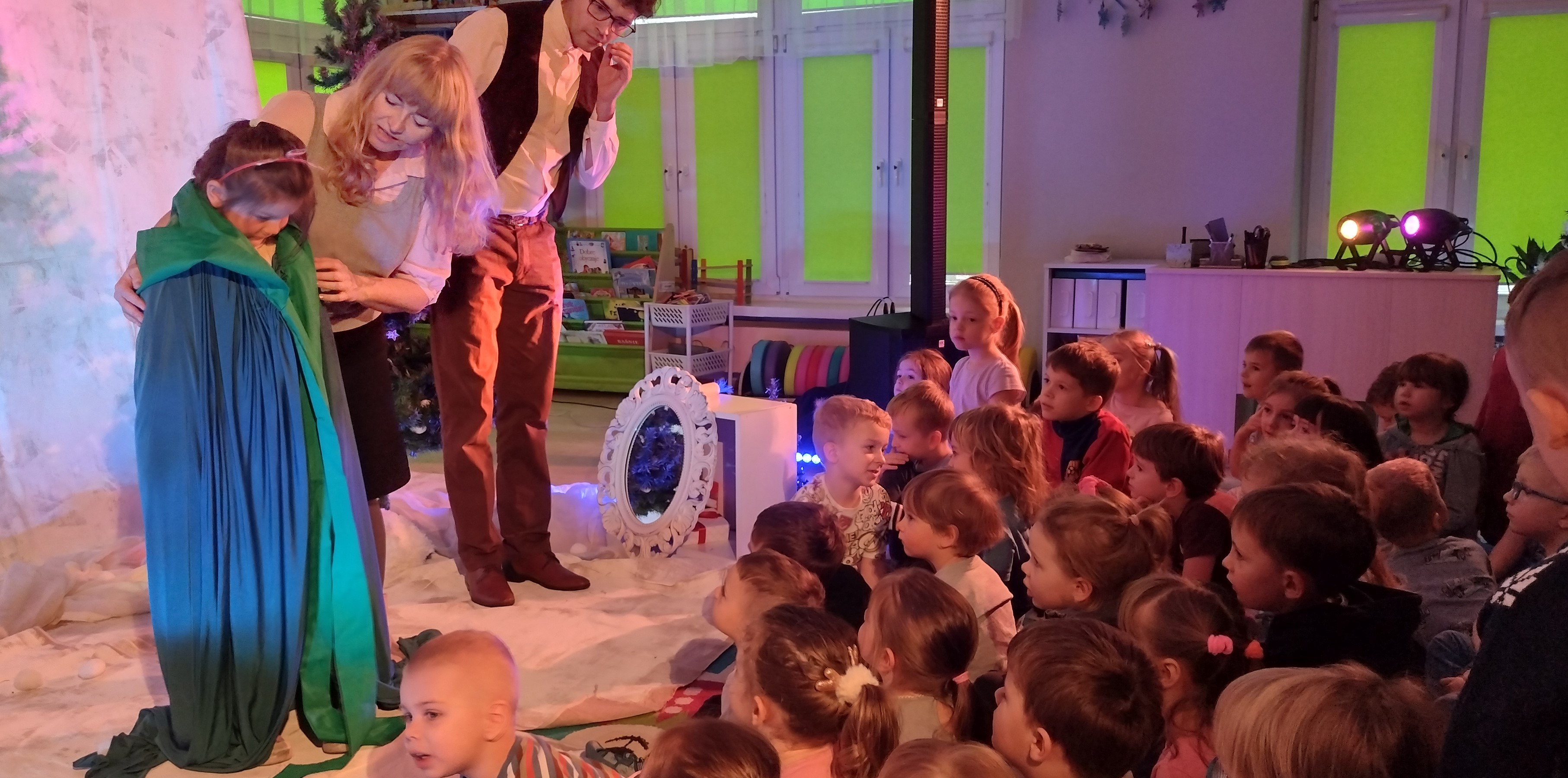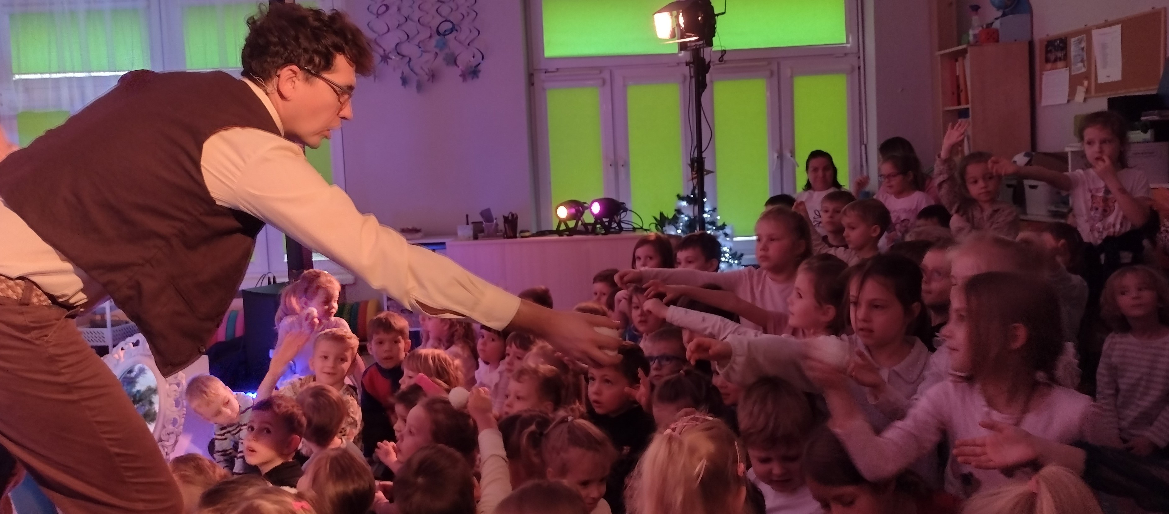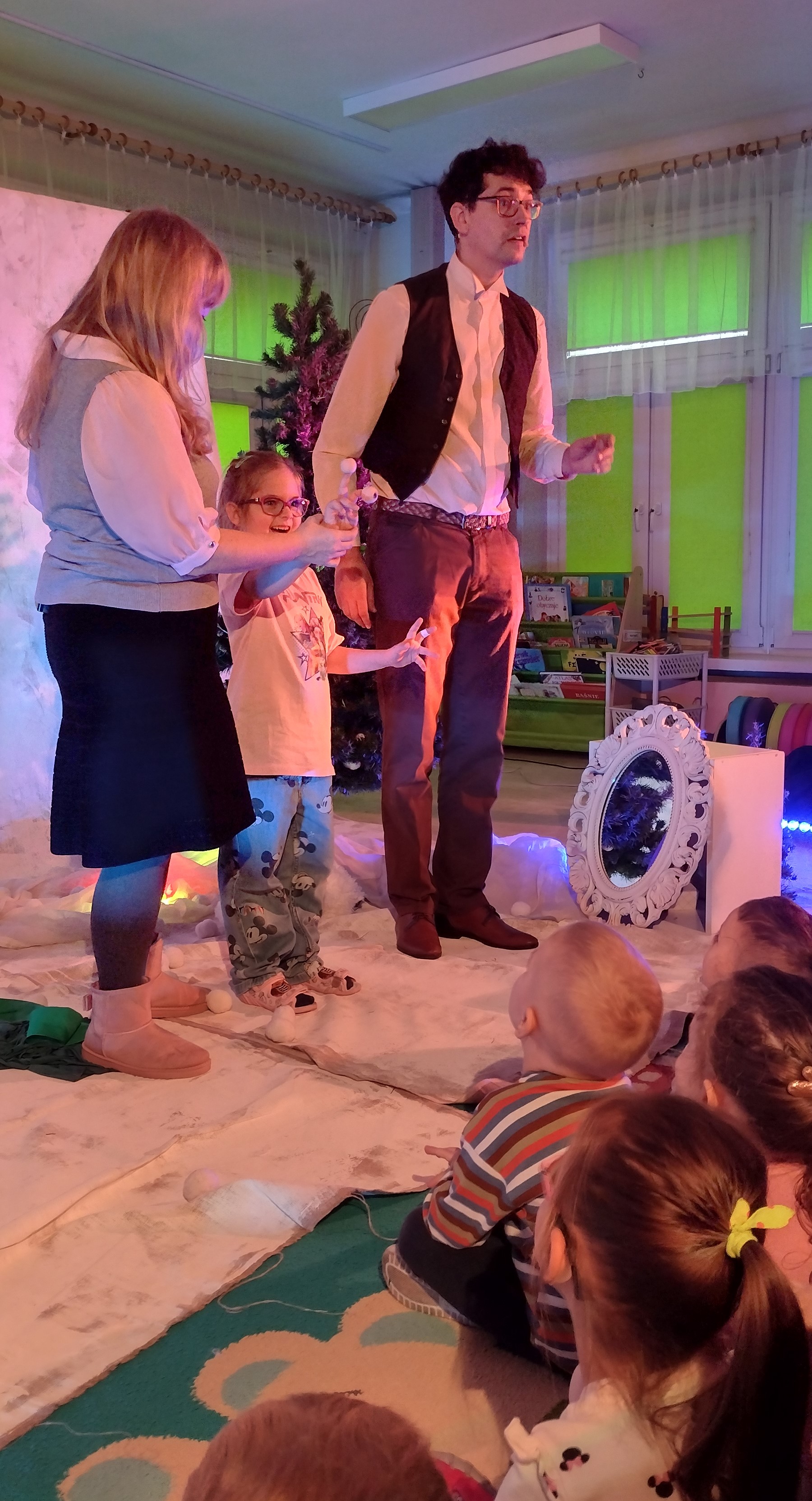 8 grudnia gościliśmy w naszym przedszkolu aktorów z Łodzi, którzy przedstawieniem "Myszka Tup Tup- w poszukiwaniu gwiazdkowego prezentu" wprowadzili nas w magiczny czas oczekiwania na zbliżające się Święta Bożego Narodzenia. Dzieci przekonały się, że w tym szczególnym czasie nie prezenty są najważniejsze, a nasi najbliżsi, z którymi możemy dzielić naszą radość.