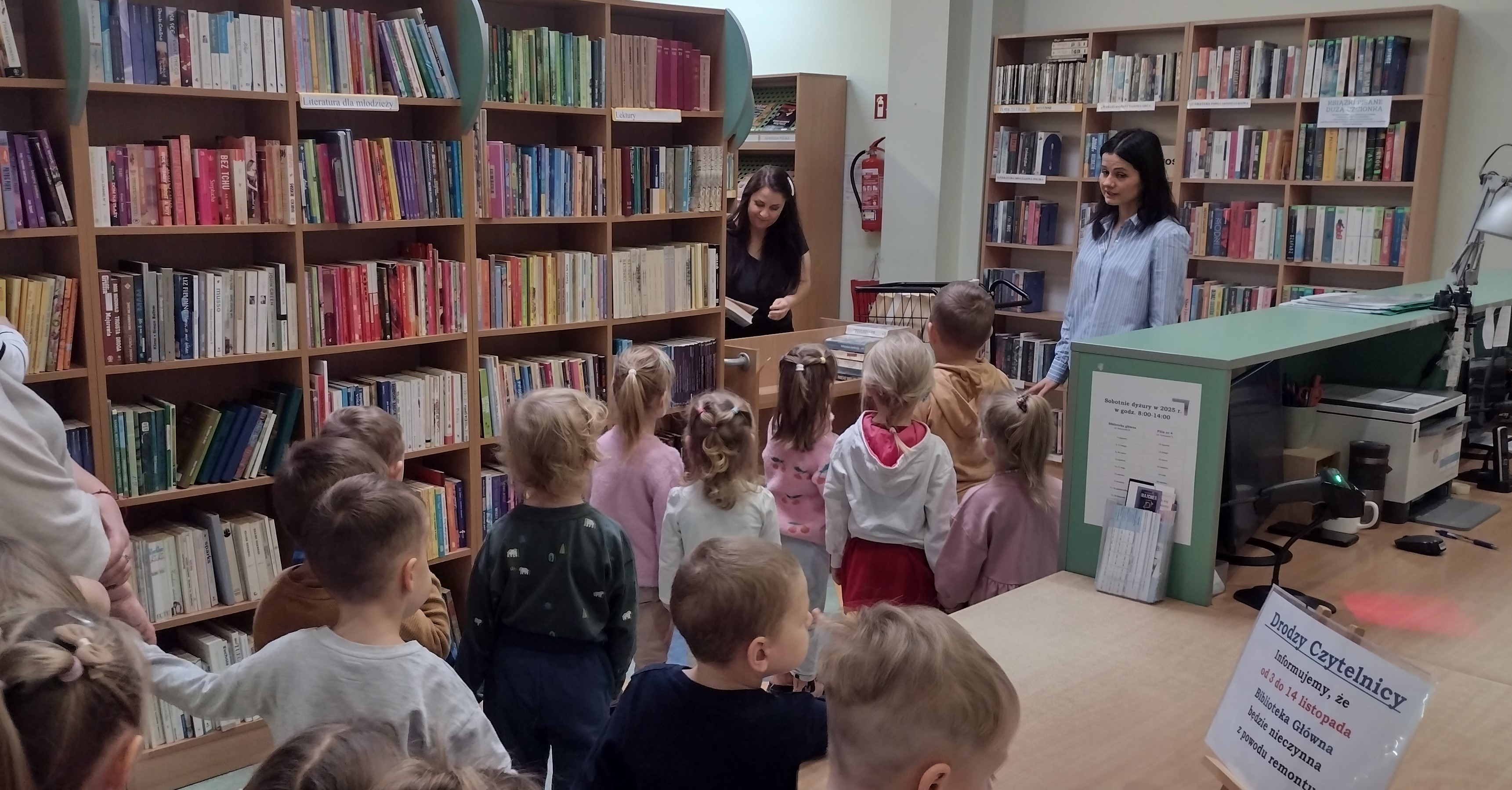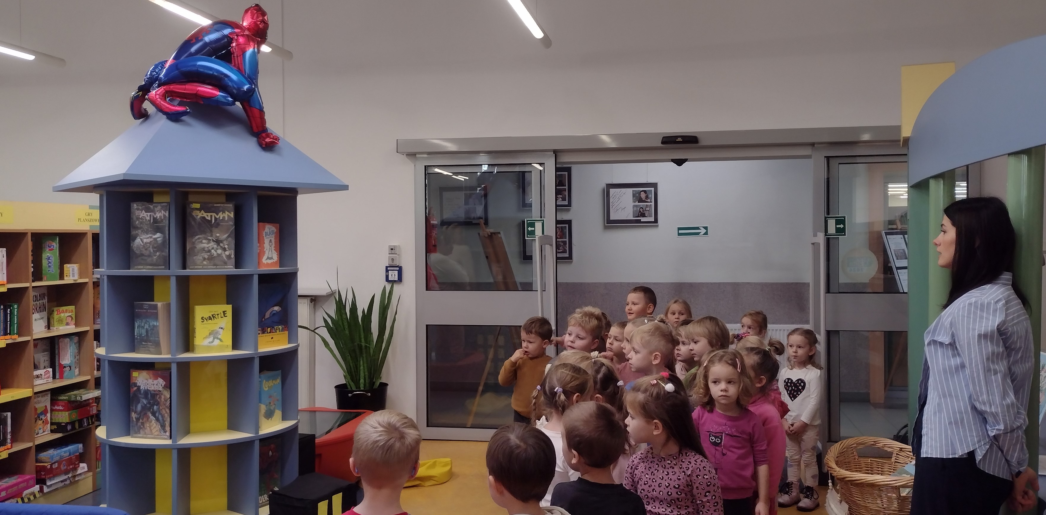 27 października grupy Misiów i Motylków udały się na swoją pierwszą wizytę do biblioteki. Przedszkolaki zwiedziły pomieszczenia biblioteki, zapoznały się z podstawowymi zasadami korzystania z zasobów bibliotecznych oraz wysłuchały bajkę przeczytaną przez Panią bibliotekarkę. Na koniec starczyło jeszcze czasu na kilka chwil wspólnej zabawy w bibliotecznym kąciku zabaw.