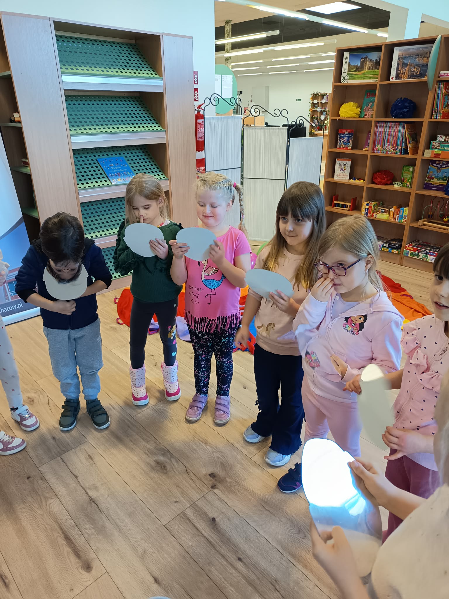 23 marca dzieci z grupy "Słoneczek" odwiedziły Miejską i Powiatową Bibliotekę Publiczną w Bełchatowie, gdzie uczestniczyły w warsztatach o tematyce społeczno-emocjonalnej pt.:"Z Życzliwością mi do twarzy".
